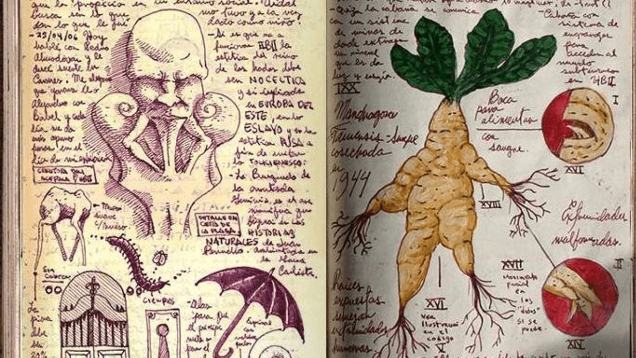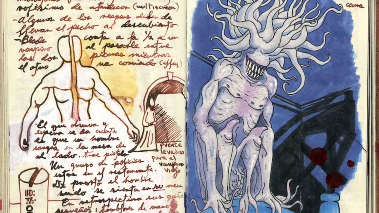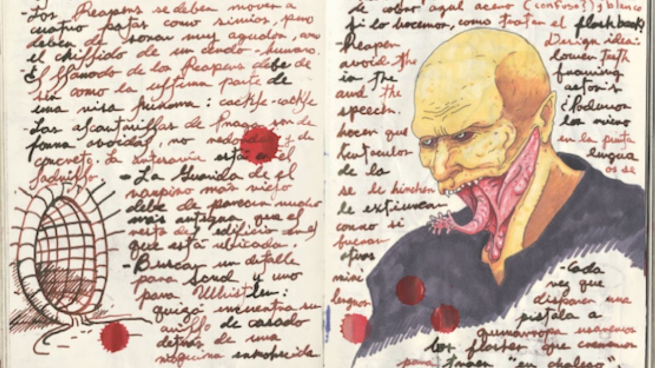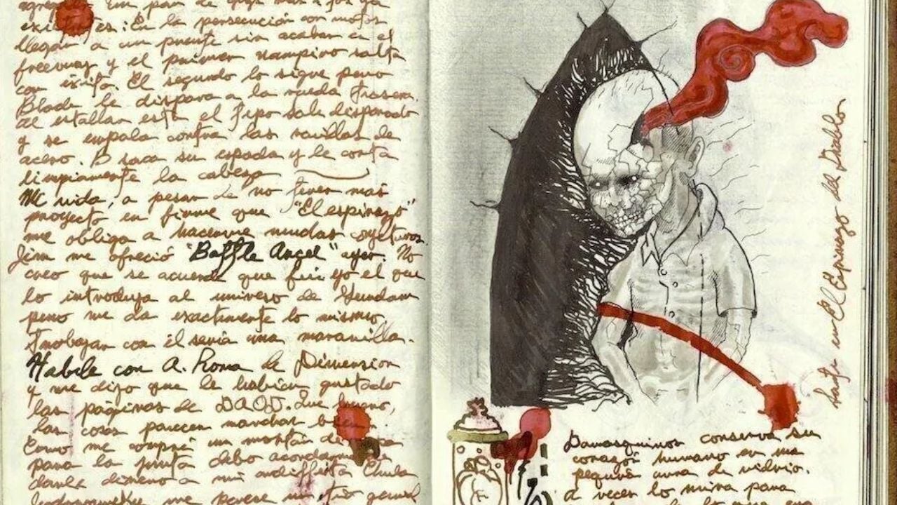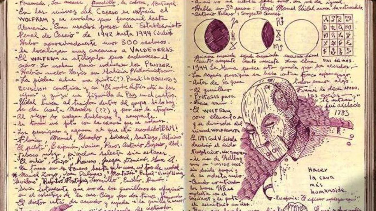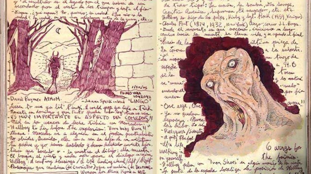 Los cuadernos de Guillermo del Toro están caracterizados por sus páginas saturadas de color, símbolos y escritos, que son mucho más que simples apuntes y se convierten en mapas donde la imaginación de este cineasta se despliega.