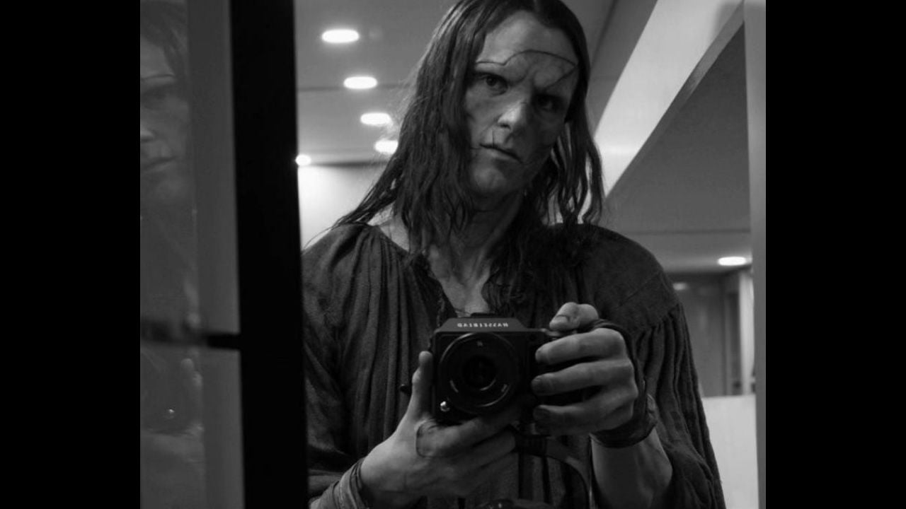 Una foto muestra a Jacob mirando el horizonte, completamente caracterizado, con una expresión melancólica. La escena resume el espíritu de la película: un ser hecho de fragmentos, buscando su lugar en un mundo que no lo entiende.