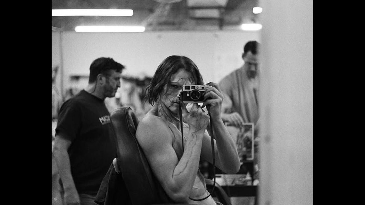 Finalmente, una imagen muy curiosa: Jacob Elordi tomándose una selfie frente al espejo ya como la criatura. Podría ser una foto sacada de un Instagram alternativo del monstruo de Frankenstein: moderna, íntima y extrañamente conmovedora.