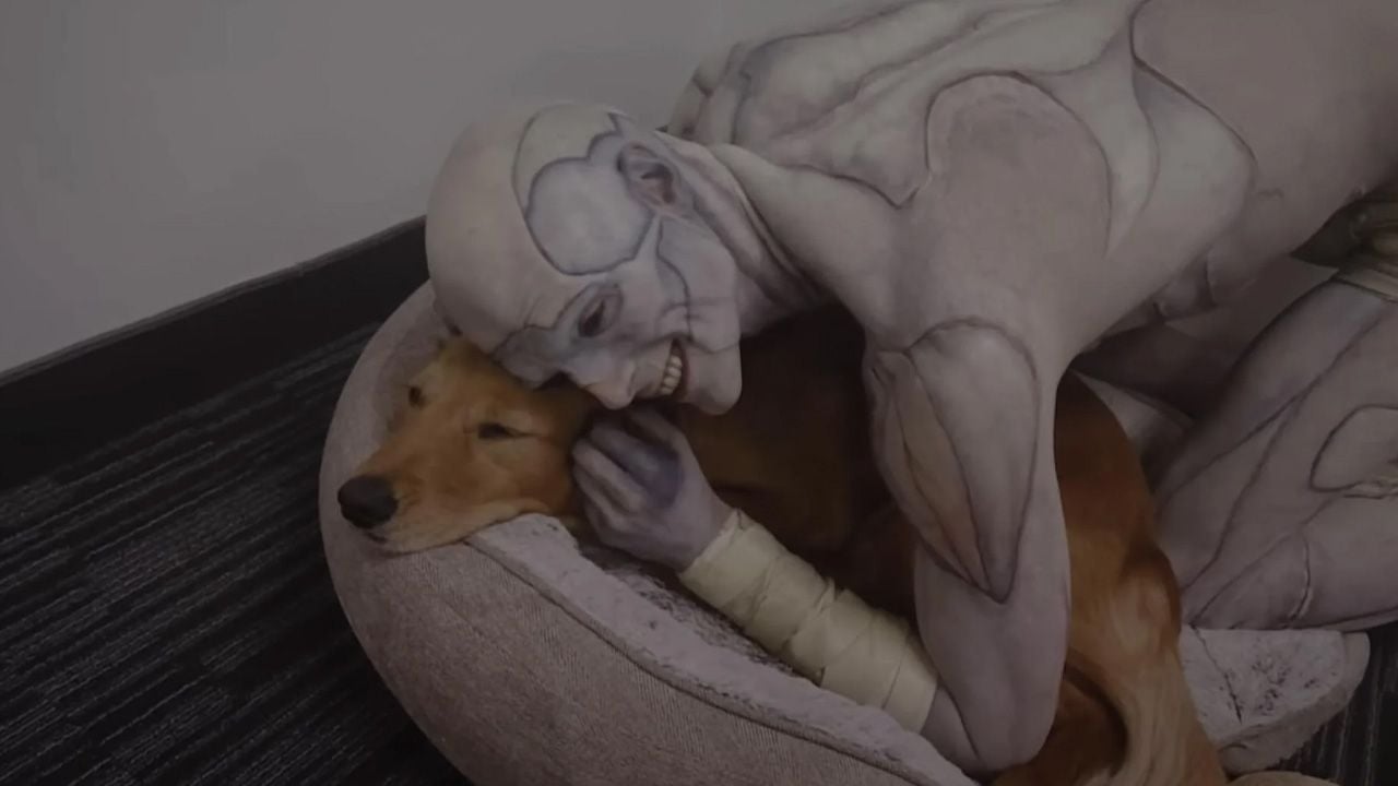 En una de las imágenes más virales, Jacob Elordi abraza a su perrita Layla mientras está caracterizado. El contraste entre el maquillaje aterrador y el gesto de ternura derritió a los fans. Elordi incluso bromeó diciendo que Layla estaba "harta" de él por no dejarla en paz durante el rodaje.