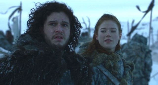 Jon se une a los Wildling y en la tercera temporada finalmente consuma su amor con Ygritt en el episodio Kissed by Fire, que quizá es el ínico que tiene más besos y caricias que sangre e intriga.