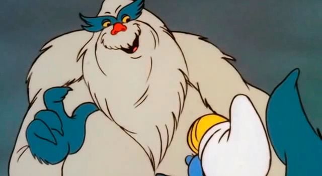 Este yeti contrario a dar miedo era muy amistoso y sólo quería abrazar y acariciar al Pato Lucas como si fuera su mascota.