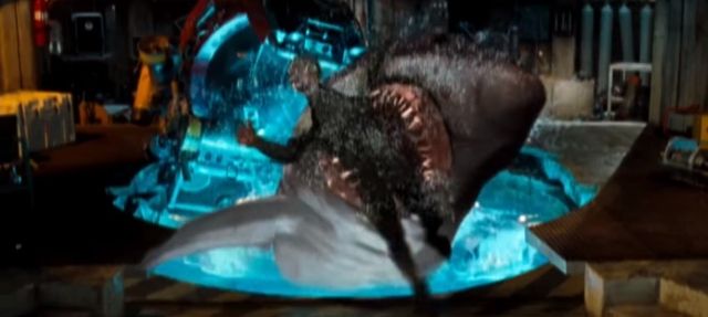 Un grupo de investigadores queda atrapado en un laboratorio aislado y se convierten en la presa de un trio de tiburones que se los quieren merendar. Samuel L. Jackson monologuea sobre el trabajo en equipo , cuando de repente...