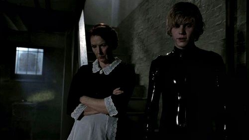 En Apocalypse tendrá el papel cómico de un rubio estilista. En la foto, sale como "Tate Langdon", el maligno hombre de goma, llamado así por su traje de látex.