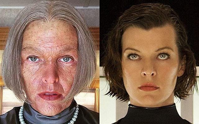Cuatro horas de mmaquillaje para crearle increíblemente detalladas arrugas a la estrella de Resident Evil