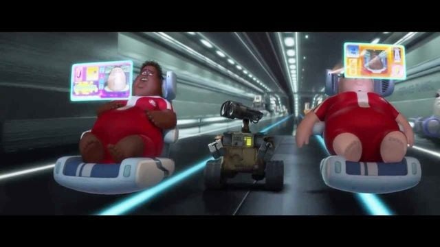 La humanidad es mórbida y vive ensimismada viendo tele, olvidando así que su basura dejó inhabitable al planeta Tierra (destruyó la naturaleza). WALL-E es el robot encargado de limpiar toneladas de desechos.