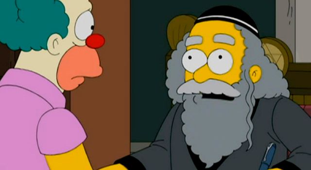 Los judíos tienen su estereotipo en el papá de Krusty, un hombre serio y conservador que no está orgulloso de su hijo; las tradiciones primero.