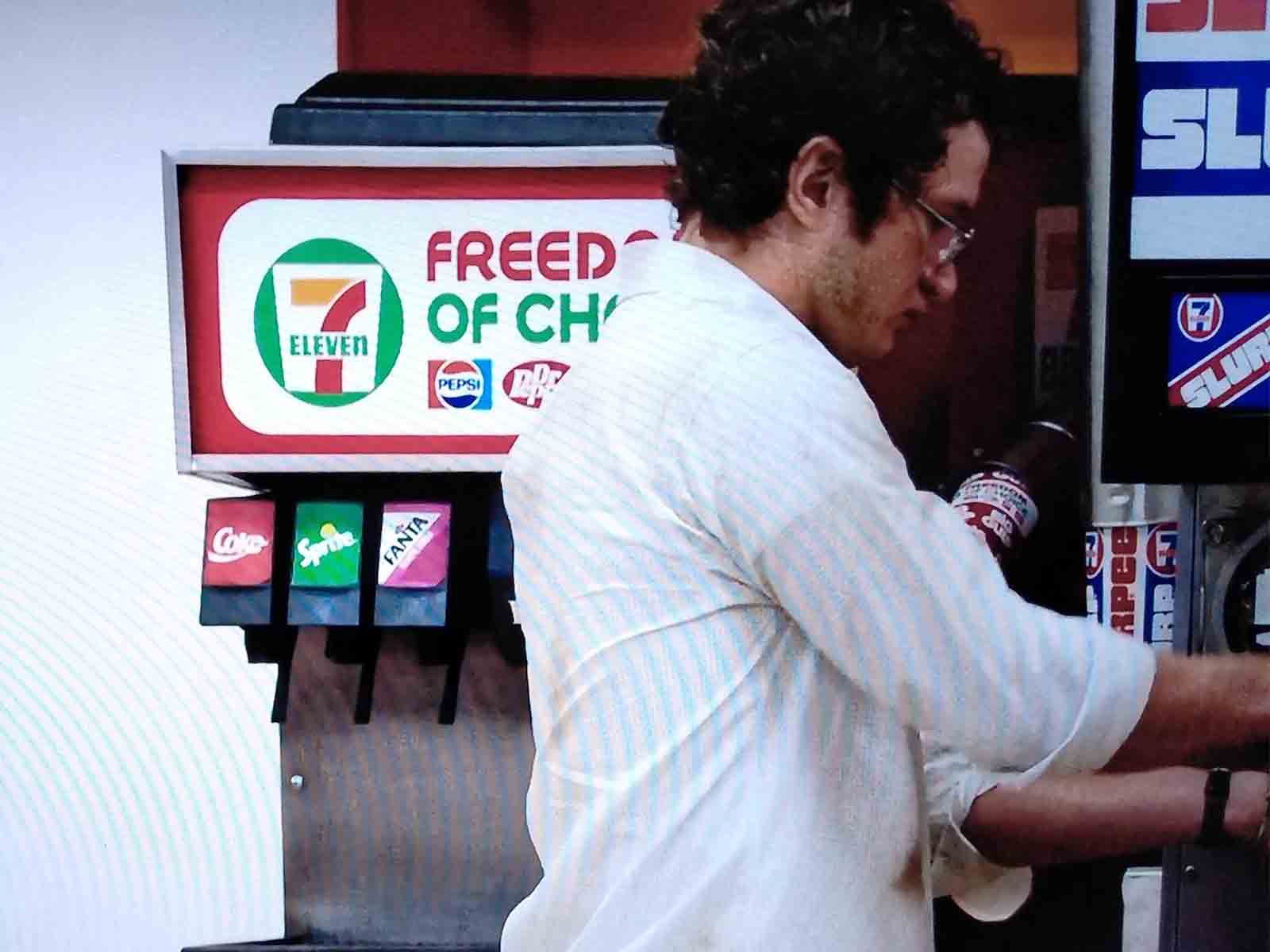 Dentro de 7 Eleven aparece una rápida escena con el cajero, las marcas de cigarrillos como Marlboro, Camel, Pall Mall, Winton, Newport y Salem.