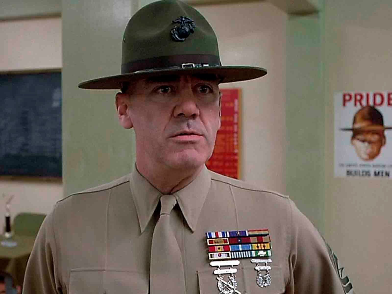 Los gritos y mal caracter de R. Lee Ermey son imposibles de olvidar en cuartel militar.