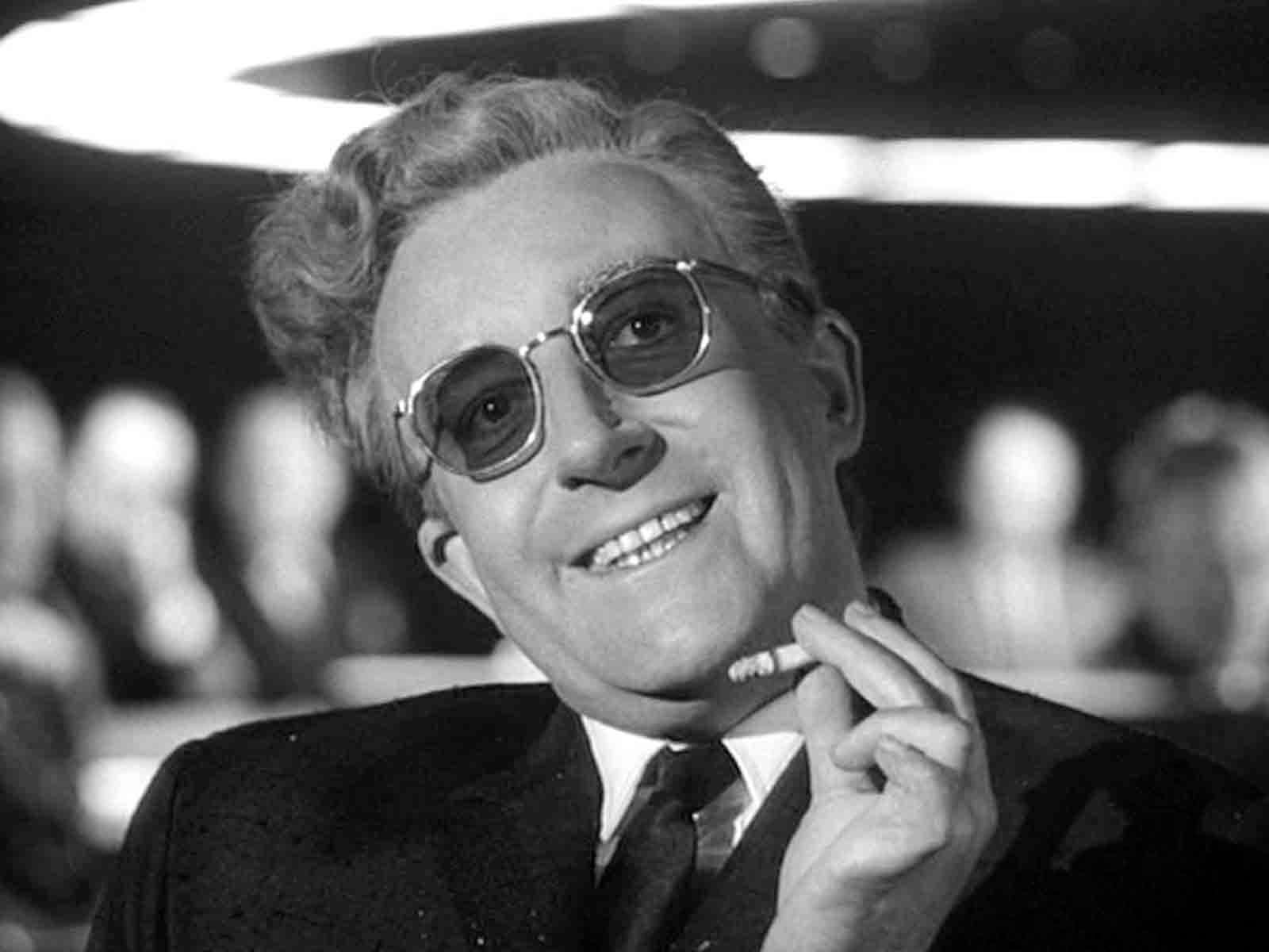 ¿Quieren la solución para detener una amenaza nuclear? Pregúntenle a Dr. Strangelove (Peter Sellers). Cómo olvidar su tic en la mano derecha.