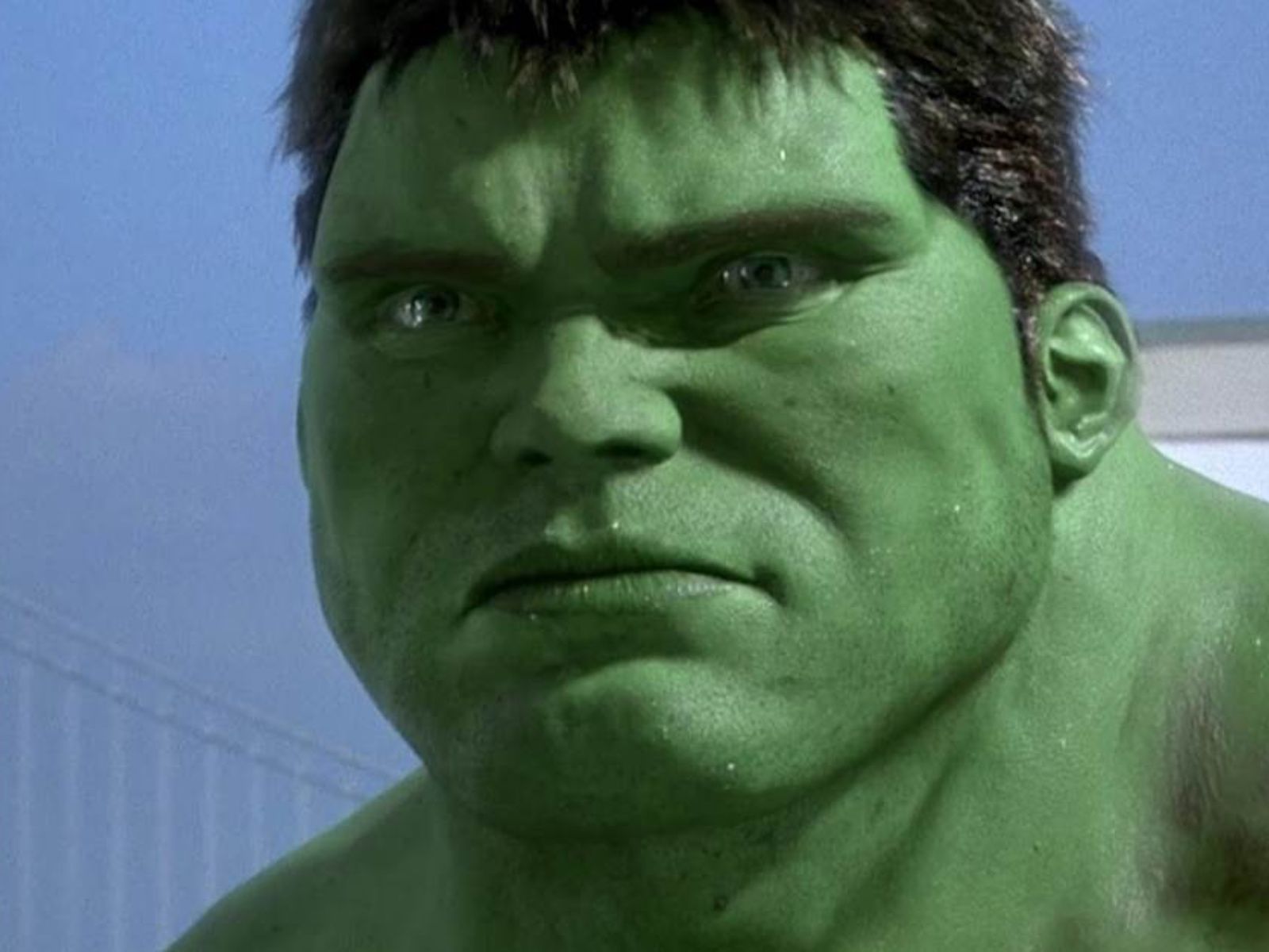 Aunque la versión de Ang Lee está subestimada, es imposible no pensar que el gran monstruo verde no parece una versión grande y mala de Shrek. El color del monstruo parece pintura aerosol y el pelo una peluca del tianguis. Honestamente no se compara con el Hulk del MCU (en el CGI).