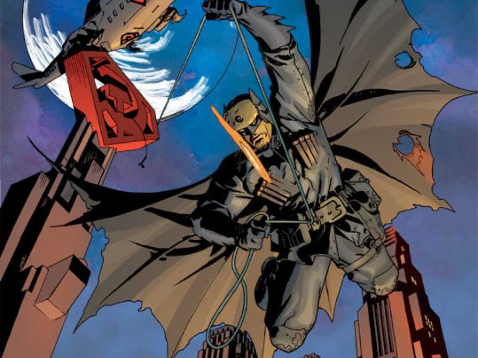 Kal-El aterriza en Ciudad Gótica y es adoptado por Martha y Thomas Wayne, pero no puede evitar su asesinato. Más tarde, achicharrará a su asesino con su visión de rayos láser y termina convertido en un vengador sanguinario.