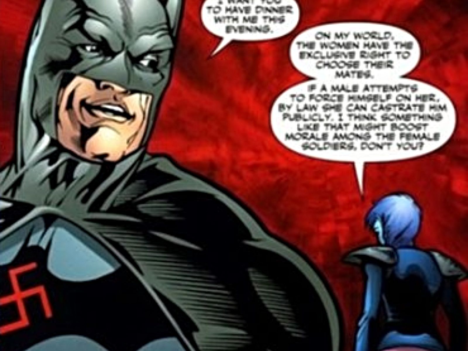 En un inquietante universo distópico en Tierra-10, Batman se encarga de proteger a los súper hombres del Tercer Reich y es la mano derecha de Hitler, quien ganó la segunda guerra mundial.
