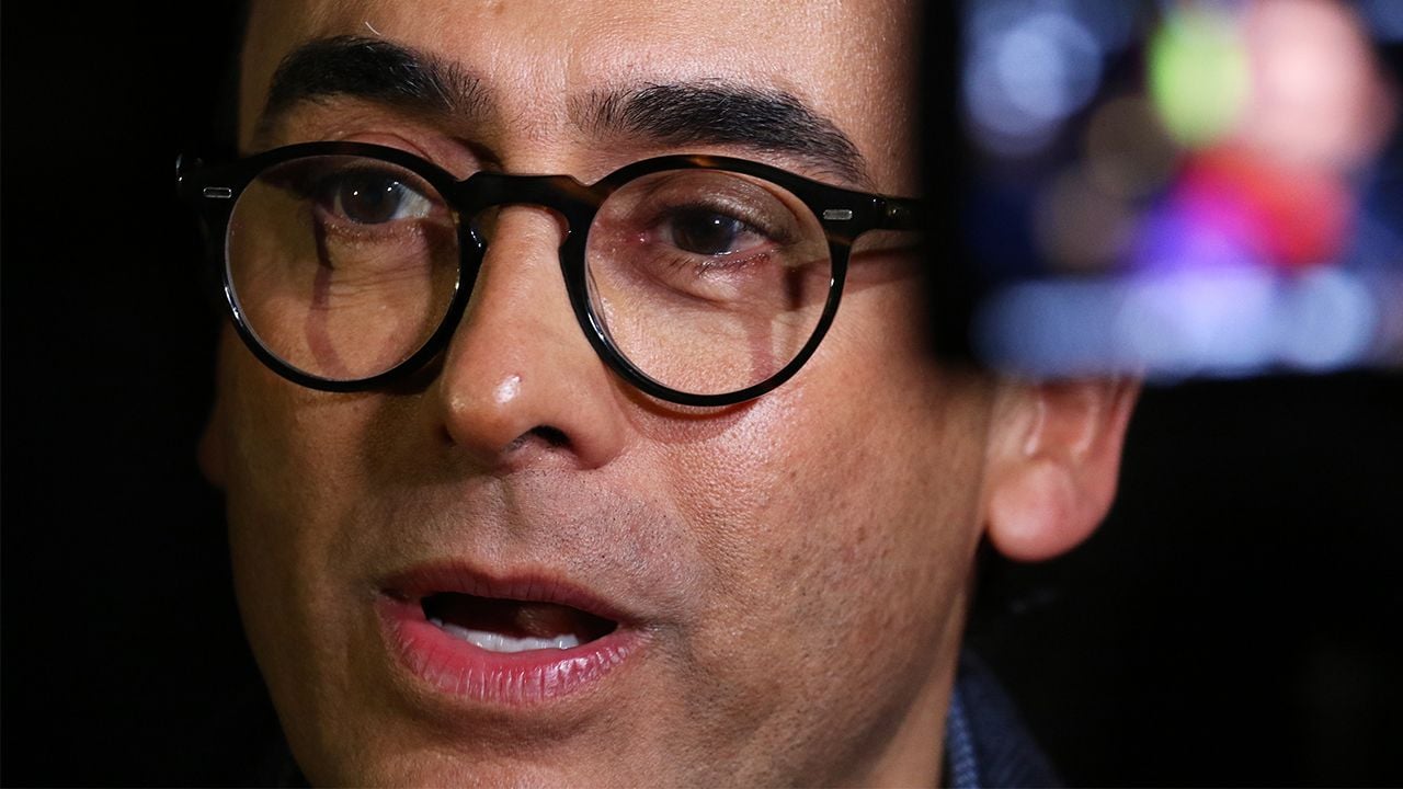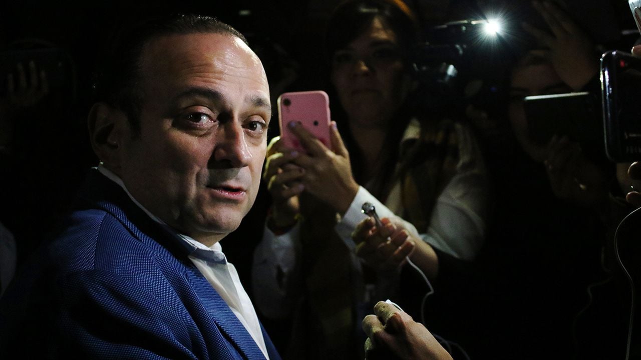 Esta imagen muestra a Eduardo España sosteniendo una conversación con los medios de comunicación.