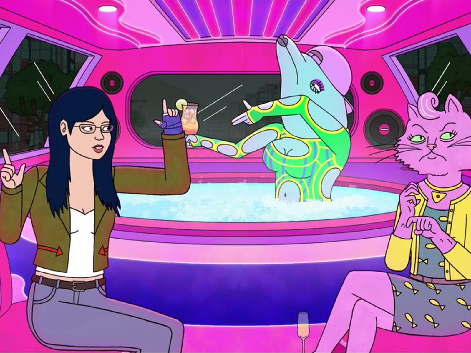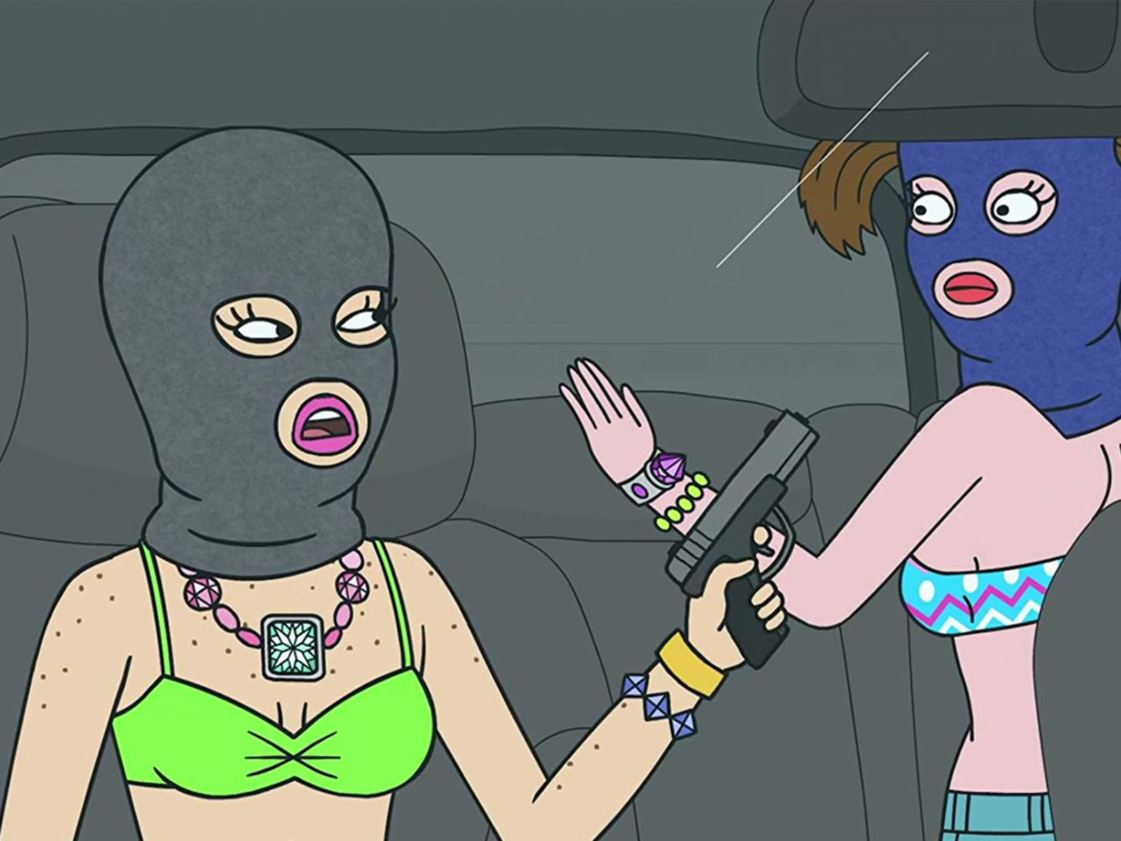 Lisa Hanawalt, quien ilustra la ropa para la serie, dijo que Sextina Aquafina está inspirada en Transformers, Mad Max: Salvajes de autopista y La naranja mecánica.