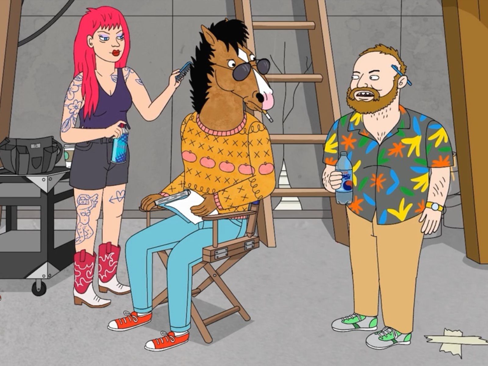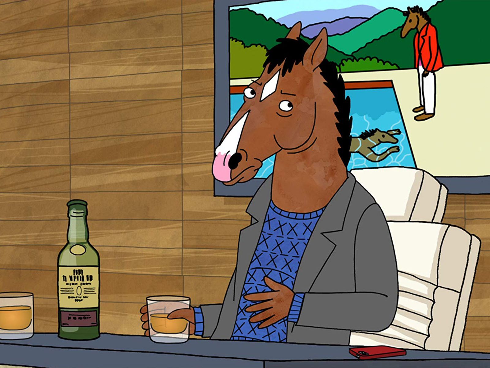 La imagen detrás del escritorio en la oficina de BoJack es una clara referencia a la pintura de David Hockney de 1972 titulada "Retrato de un artista (piscina con dos figuras).”