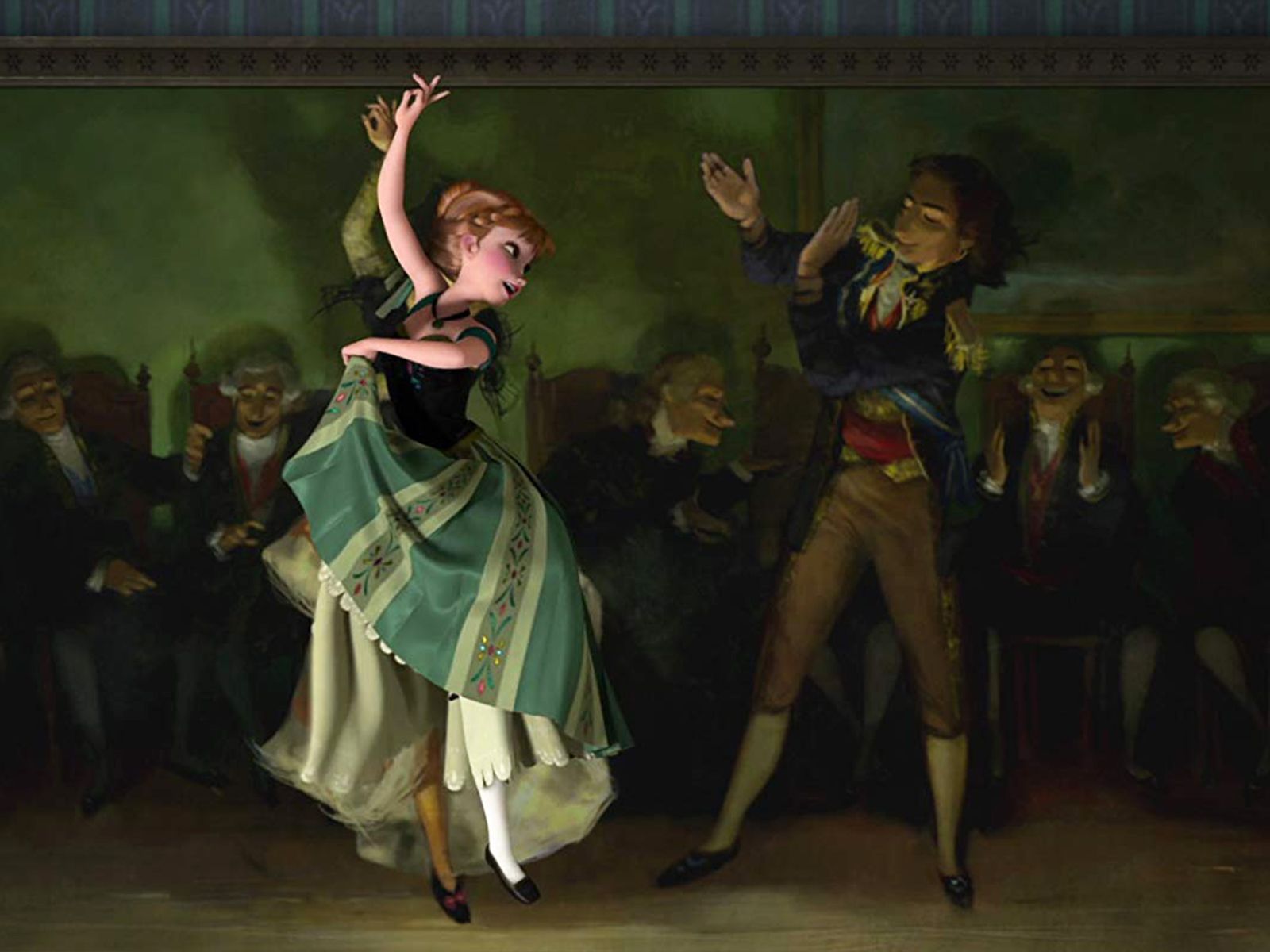 Mientras Anna (voz de Kristen Bell) baila y canta por los pasillos del castillo, se hace la siguiente pregunta: "¿Por qué tener un salón de baile sin pelotas?", bueno... esto fue un poco subido de tono.