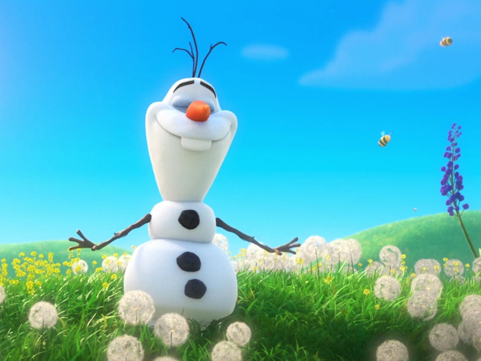 El humor negro debe tener timing, justo lo que hace Olaf (voz de Josh Gad) mientras cantaba en un valle y al notar un charco hace una pausa para decir: "El invierno es un buen momento para quedarse y abrazarse, pero ponme en verano y seré un... ¡Feliz muñeco de nieve!"