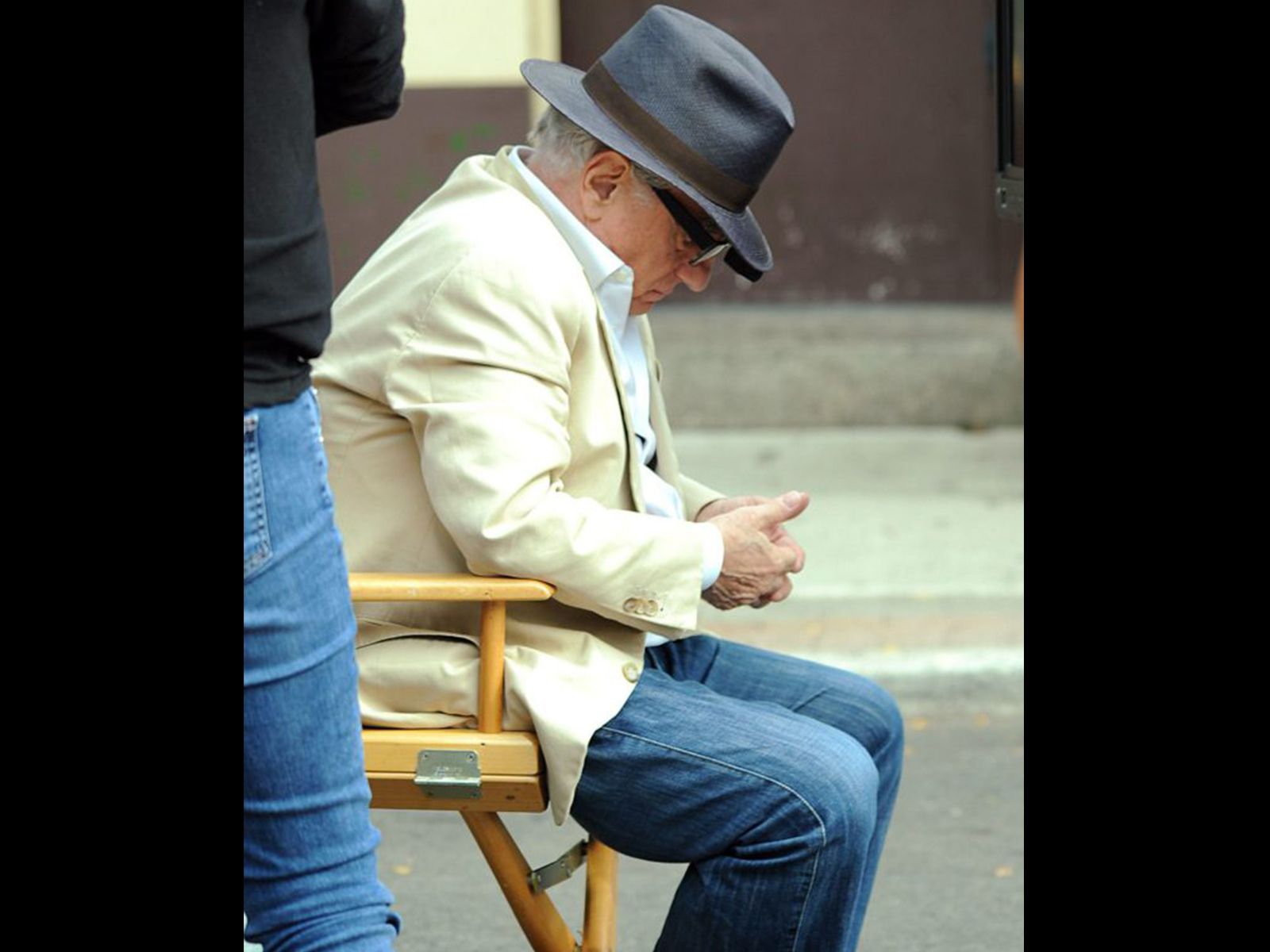 Tal vez estamos viendo el momento de meditación previa a un importante día de rodaje, esa pose y el solitario lugar en el que se encuentra Scorsese nos hace pensar en ello: concentración al máximo.