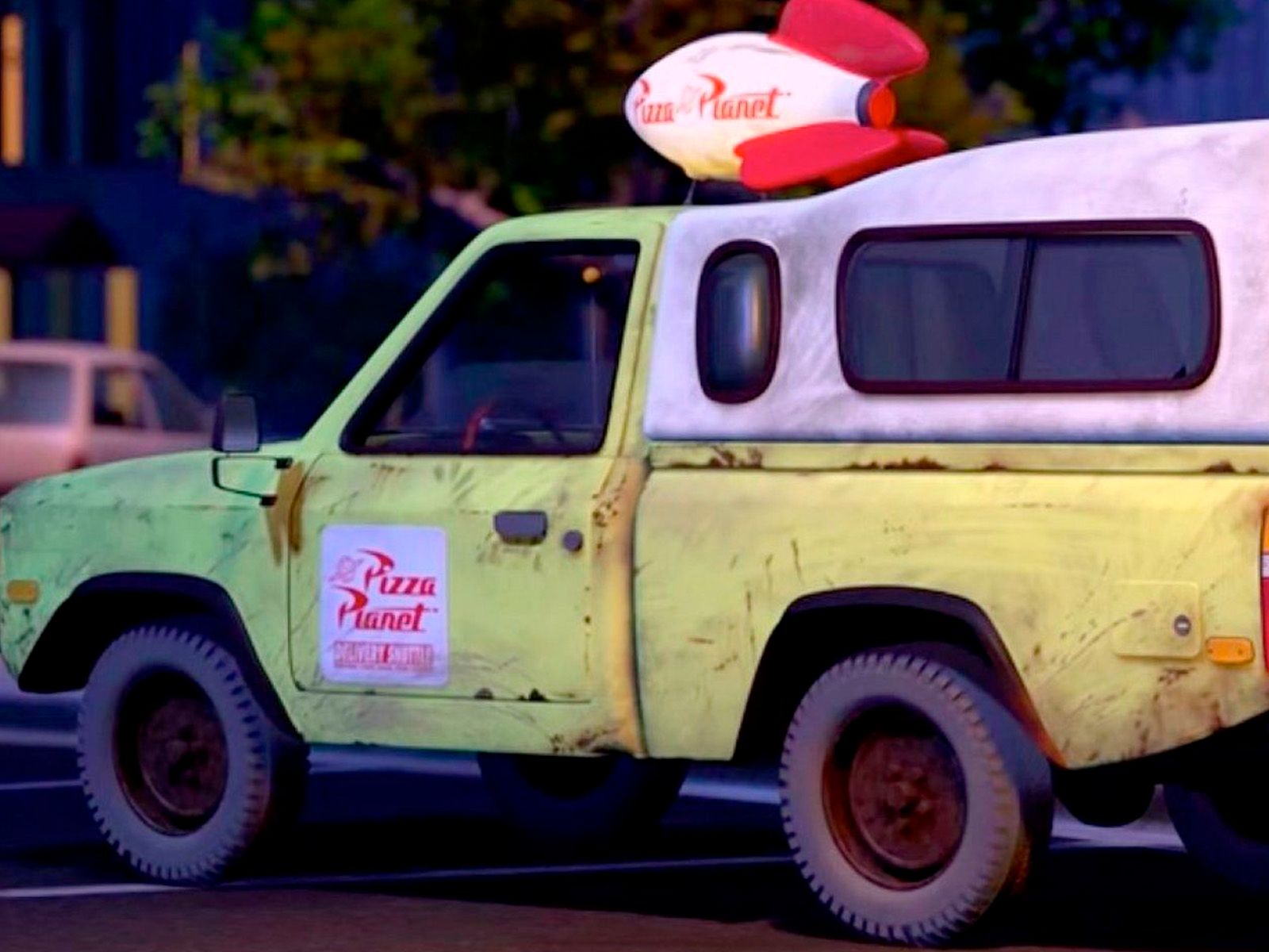 Uno de los easter-eggs más recurrentes de Pixar es la aparición de la camioneta de Pizza Planeta. En Unidos aparece a un costado de la caseta que cruzan los protagonistas en la primera parte de la película.