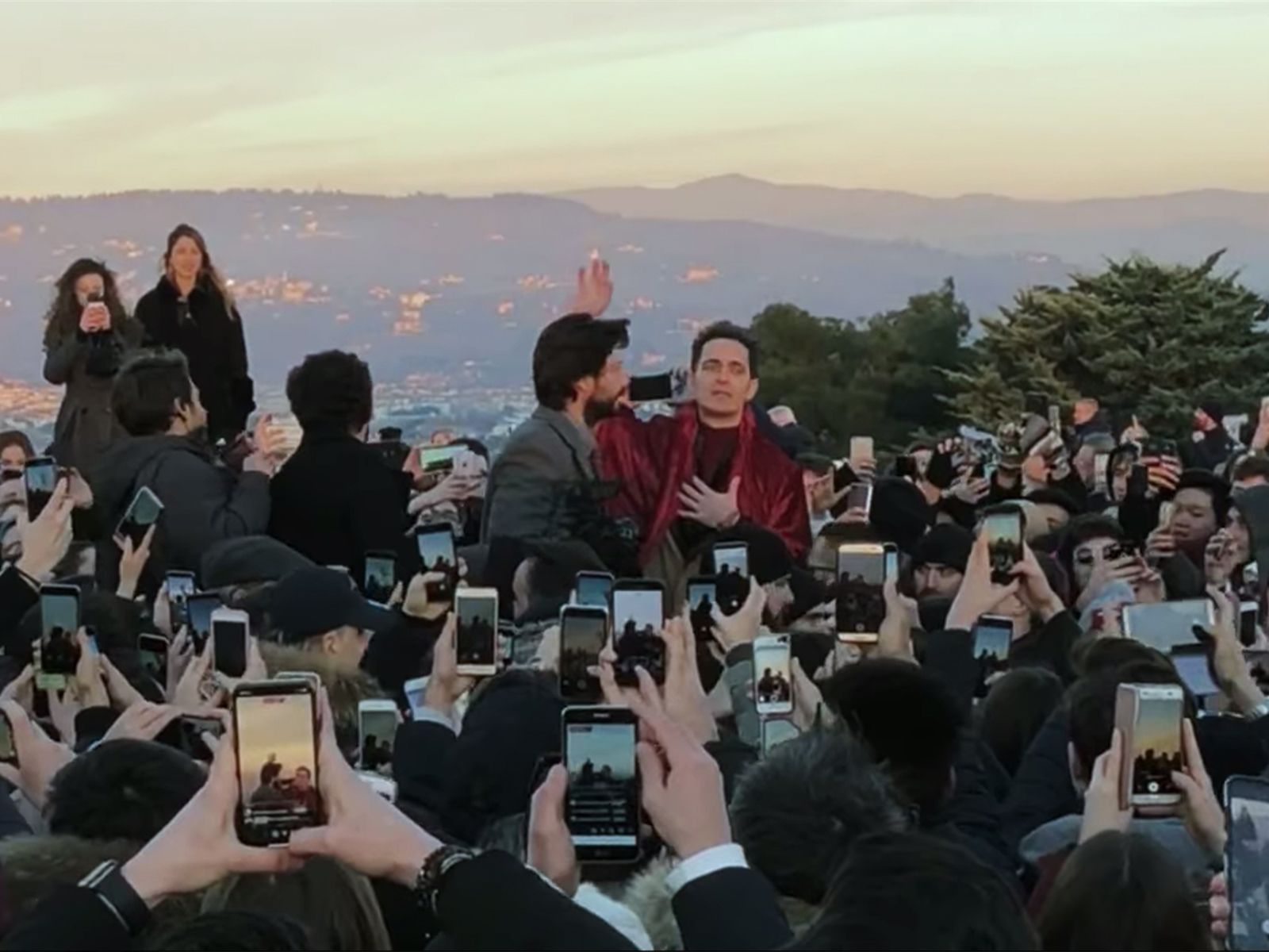Mientras rodaban la tercera temporada en Florencia, Italia; un sin número de fanáticos se acercaron a la producción, cantaron “Bella Ciao” y después brincaron la barda para saludar a Pedro Alonso y Álvaro Morte.