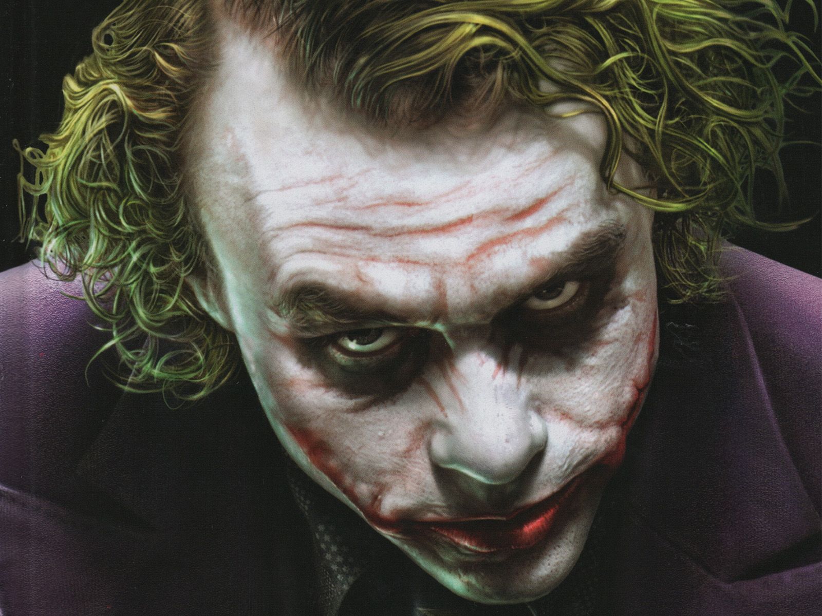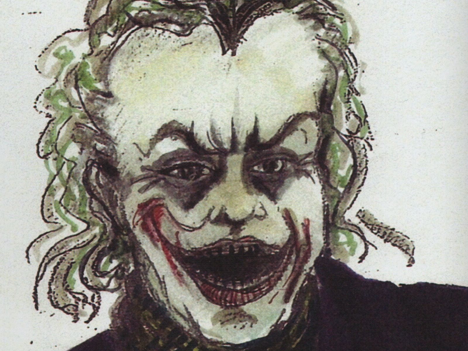 Detrás de estas ilustraciones podemos conocer los primeros diseños del temible Joker que Heath Ledger estaría por interpretar. Aquí el cabello e incluso el traje son distintos.