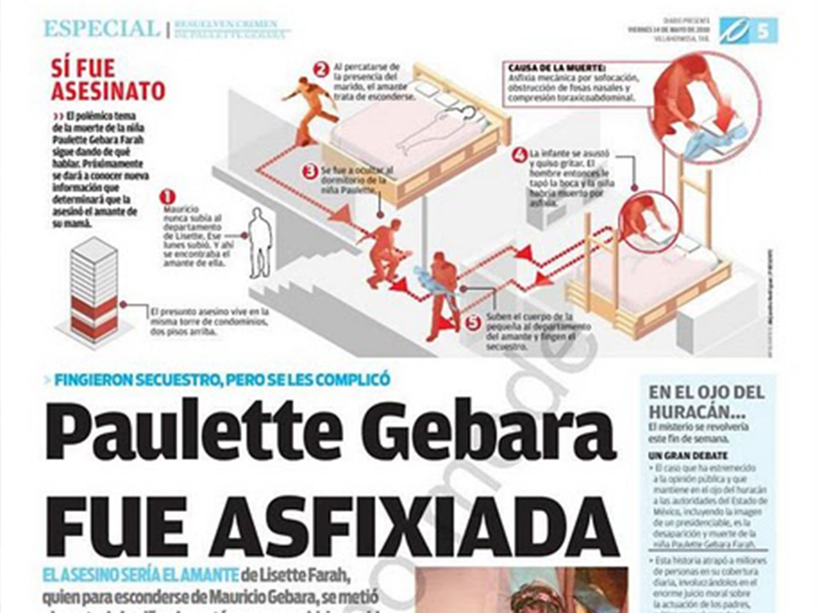 Aproximadamente a las 2 a.m. fue hallado el cuerpo sin vida de la pequeña Paulette en su propia habitación, la cual había sido registrada días atrás por peritos y perros especializados en investigaciones. Además, Lizette Farah había concedido múltiples entrevistas a medios de comunicación en la misma recamara. El entonces procurador del Estado de México, Alberto Bazbaz confirmó que Paulette perdió la vida por “asfixia mecánica por obstrucción de fosas nasales y compresión toraxicoabdominal.”