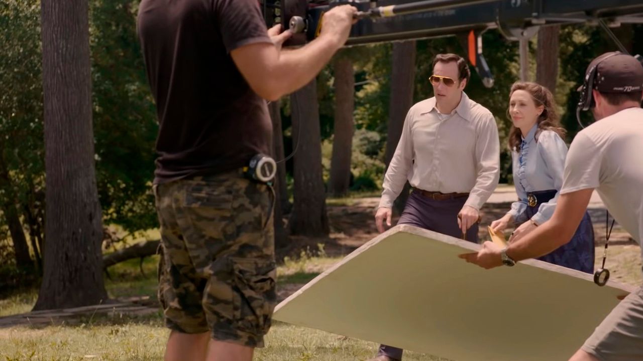 El primer vistazo a la película fue gracias a un video detrás de cámara en el que se habla de todas las películas de El conjuro y justo ahí se pueden ver las imágenes con los protagonistas. “Realmente quería que El conjuro 3 se alejara de toda la configuración de la casa encantada de las dos primeras películas”, comenta James Wan: “Debería ser más a un nivel completamente diferente, algo que nunca habíamos explorado en el mundo de El conjuro”.