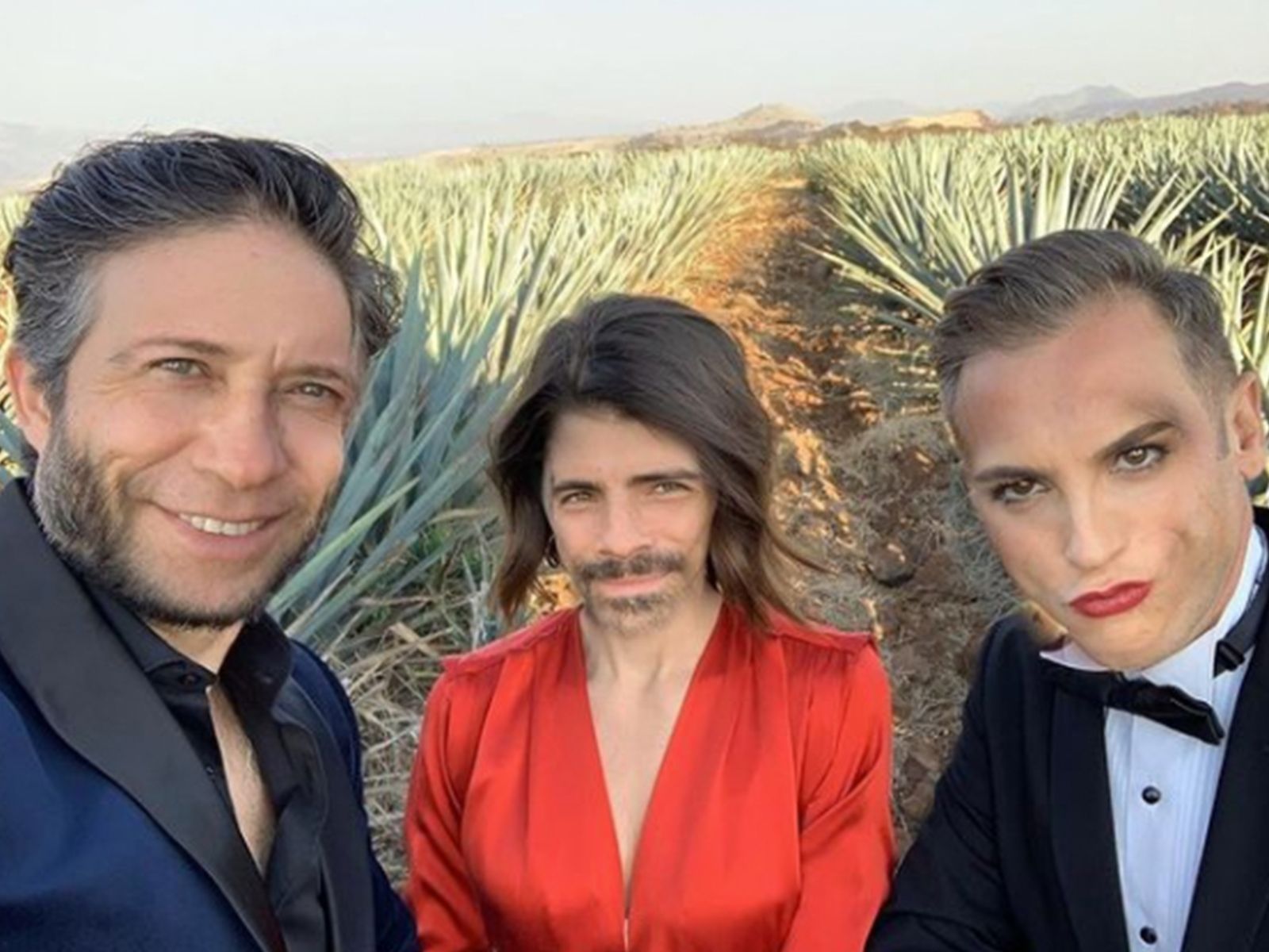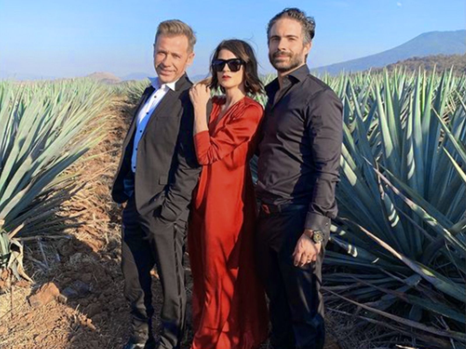Ahora sí, los verdaderos rostros de Juan Manuel Bernal, Irene Azuela y Osvaldo Benavides aprovecharon la oportunidad para una foto de recuerdo de Monarca en medio de los ágaves.