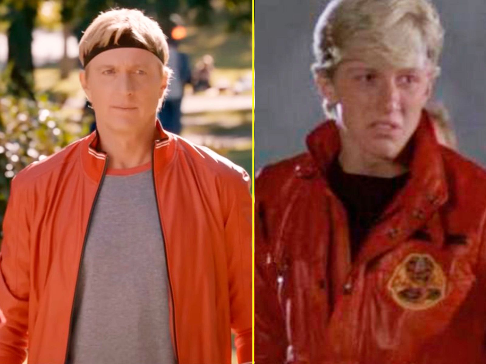 No es casualidad que Johnny Lawrence (William Zabka) utilizara una chamarra roja para inaugurar las actividades de su dojo Eagle Fang, sino que se trata de una referencia a la vestimenta del personaje en buena parte de Karate Kid.