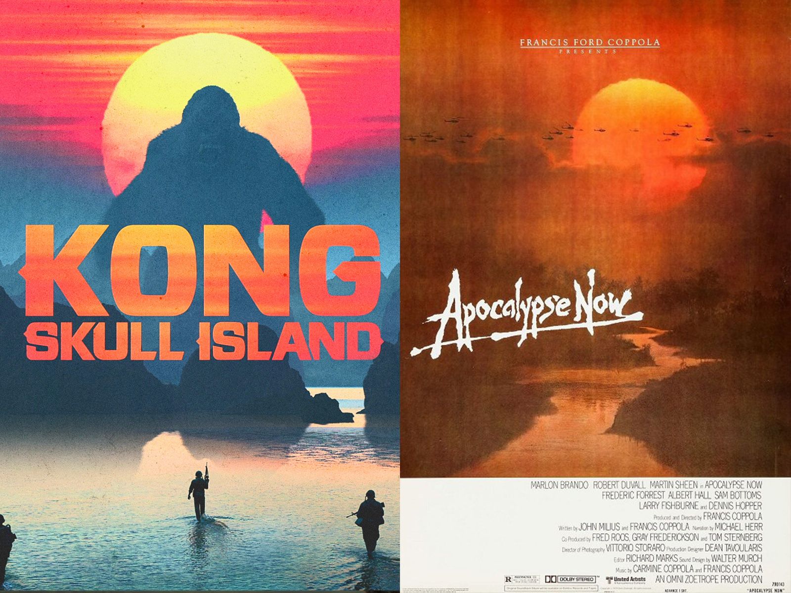 Cada vez que pensamos en películas con esencia bélica nos vienen a la mente un sinfín de producciones, por ello la producción de Kong: La isla calavera decidió homenajear a una de ellas: Apocalypse Now de Francis Ford Coppola, tan sólo compara los pósters de cada cinta y podrás notarlo de inmediato.