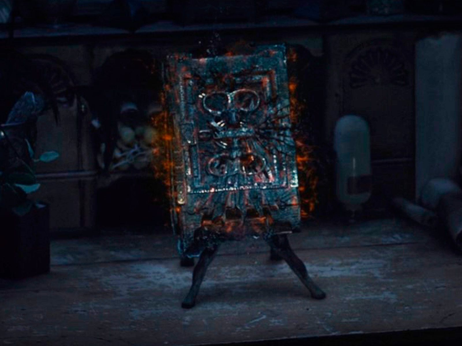 El libro que Agatha Harkness (Kathryn Hahn) tiene en su sótano podría ser el Darkhold que proviene del infierno y posee conocimiento infinito para que quien lo lea obtenga lo que quiera.