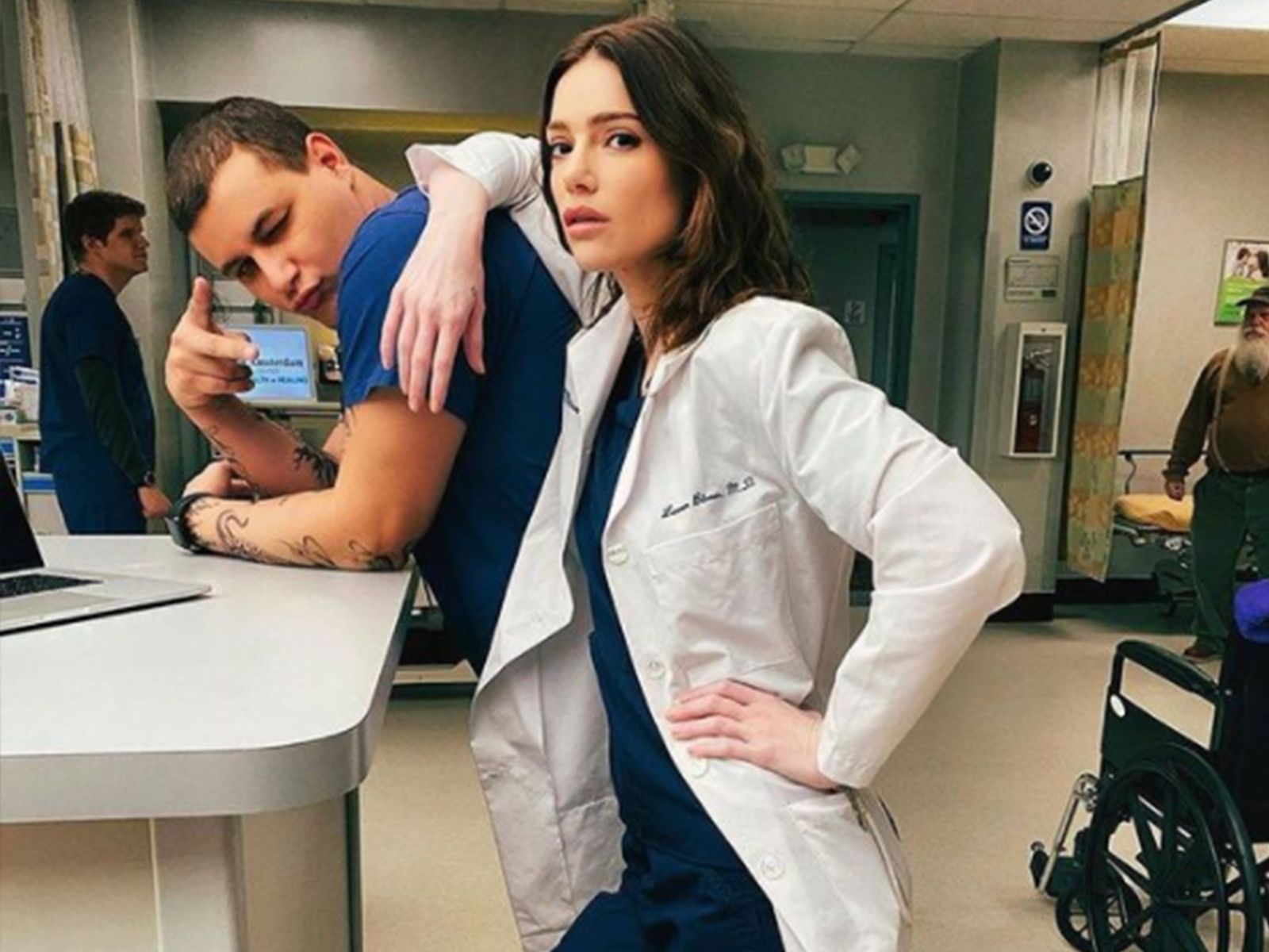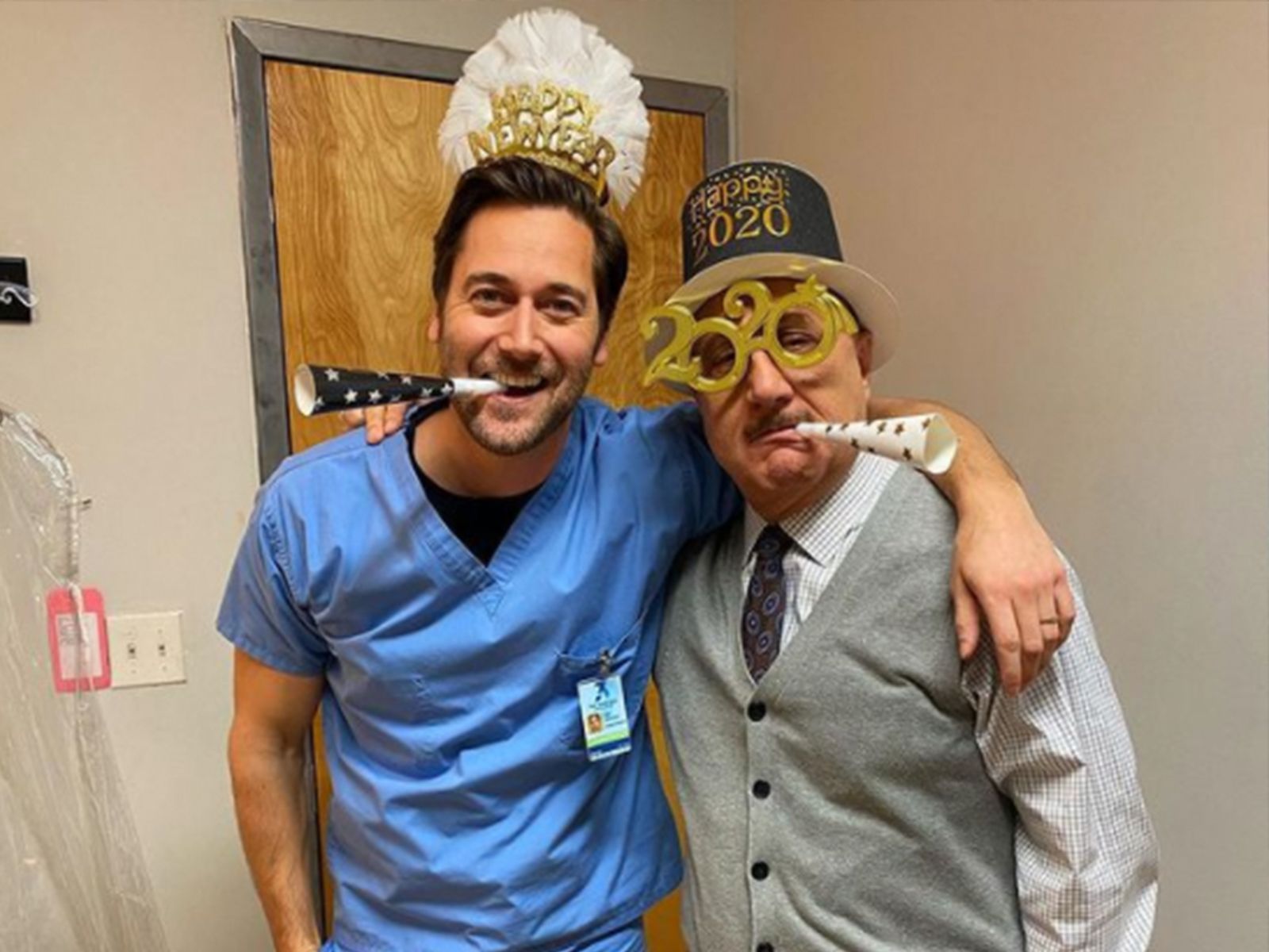 Igual que los doctores en la vida real, el reparto entero de New Amsterdam aprovechaban sus minutos libres para tomarse fotos con el uniforme médico para darle un toque especial al recuerdo.