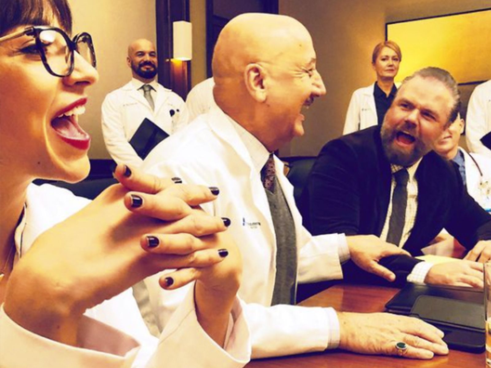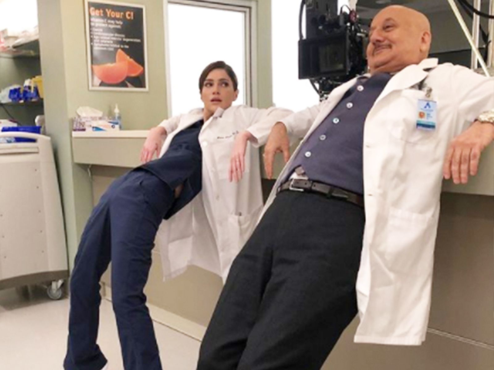 ¿Qué tanta seriedad hay en los sets de New Amsterdam? Digamos que mucha, pero al mismo tiempo casi nada, cuando hay cinco minutos libres Janet Montgomery y Anupam Kher se divierten como niños.