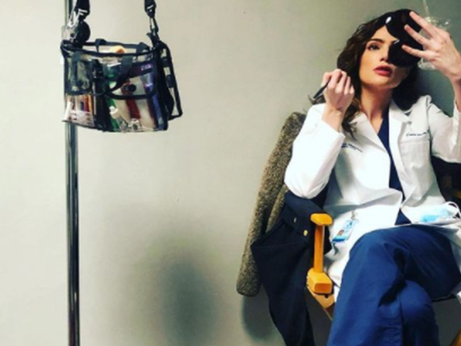 Janet Montgomery también nos enseñó con esta imagen que el maquillaje perfecto puede obtenerse en cualquier rincón de la producción de New Amsterdam.