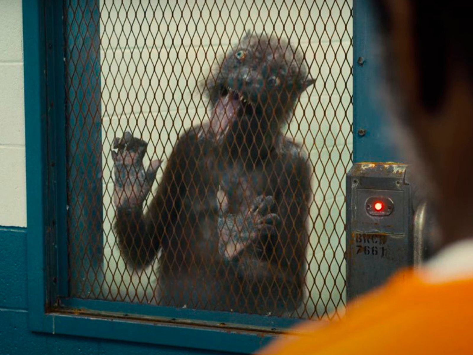 En este fotograma se puede apreciar en la pantalla una toma a Starro, una enorme estrella de mar que será la antagonista de El Escuadrón Suicida.
