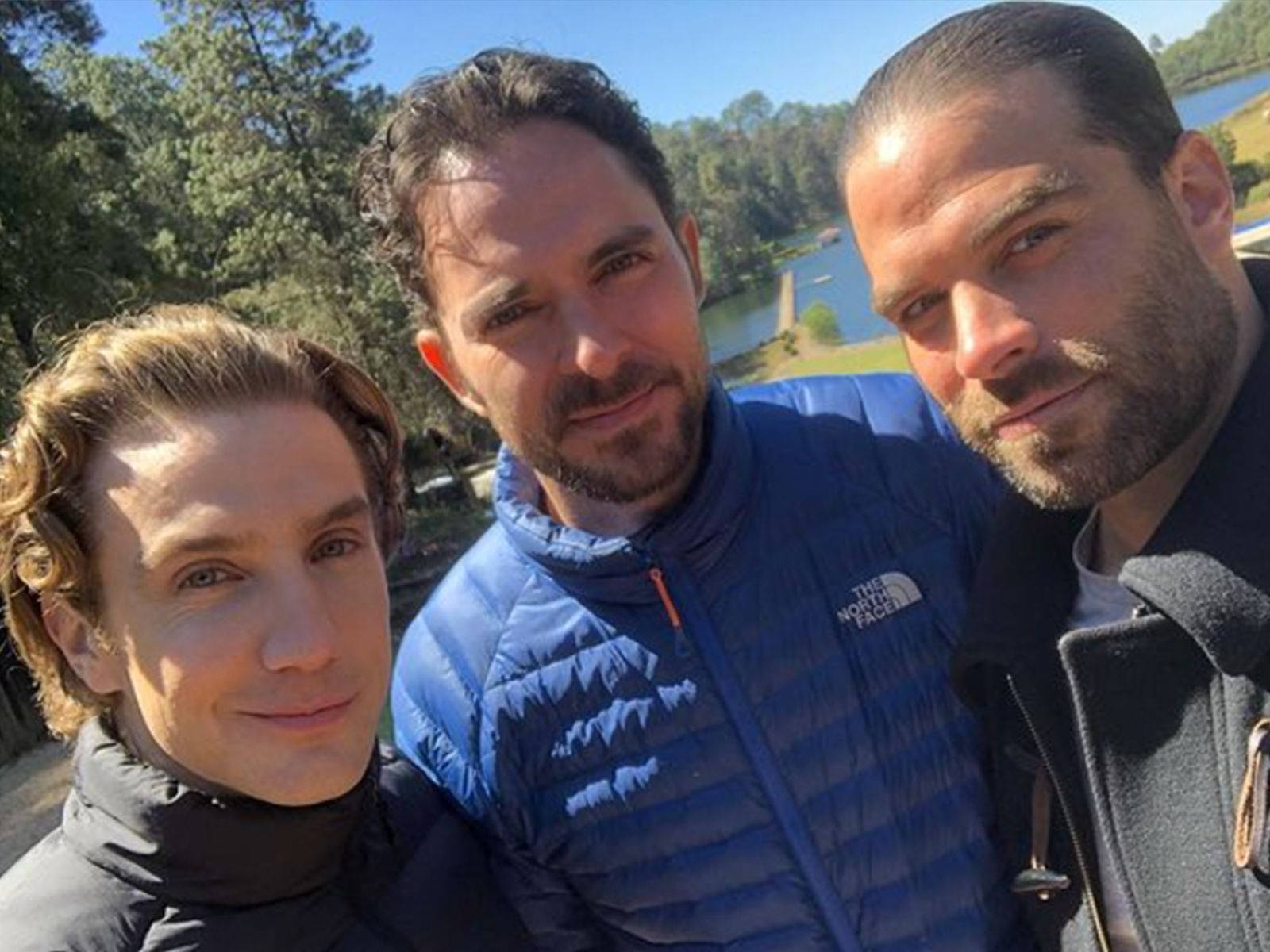 Las chamarras que portan Eugenio Siller, Manolo Cardona y Alejandro Nones en un campo abierto demuestra el compromiso del reparto y la producción de ¿Quién mató a Sara? por encontrar las mejores locaciones que requería la historia.