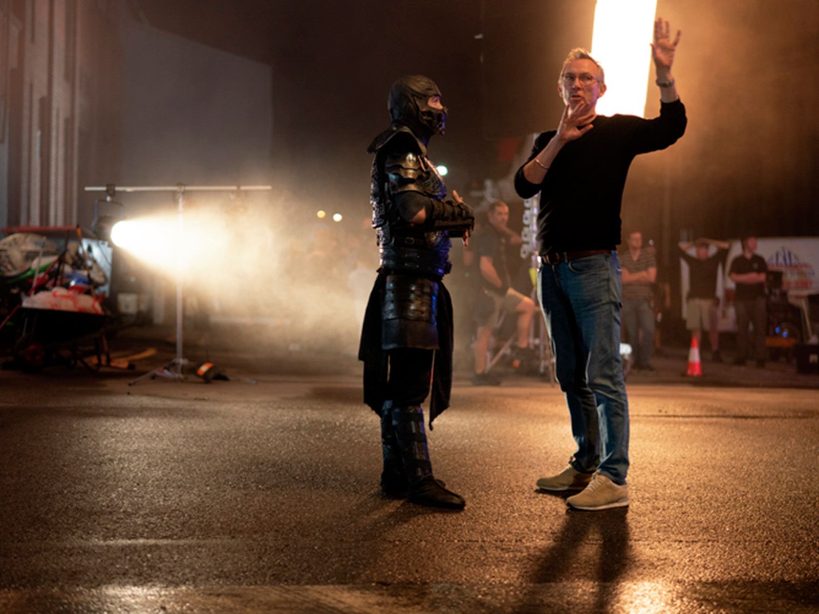 Aunque en primer plano vemos a Simon McQuoid, de fondo se ve a Sub-Zero, a quien le estaban dando unos últimos toques de maquillaje o indicaciones.