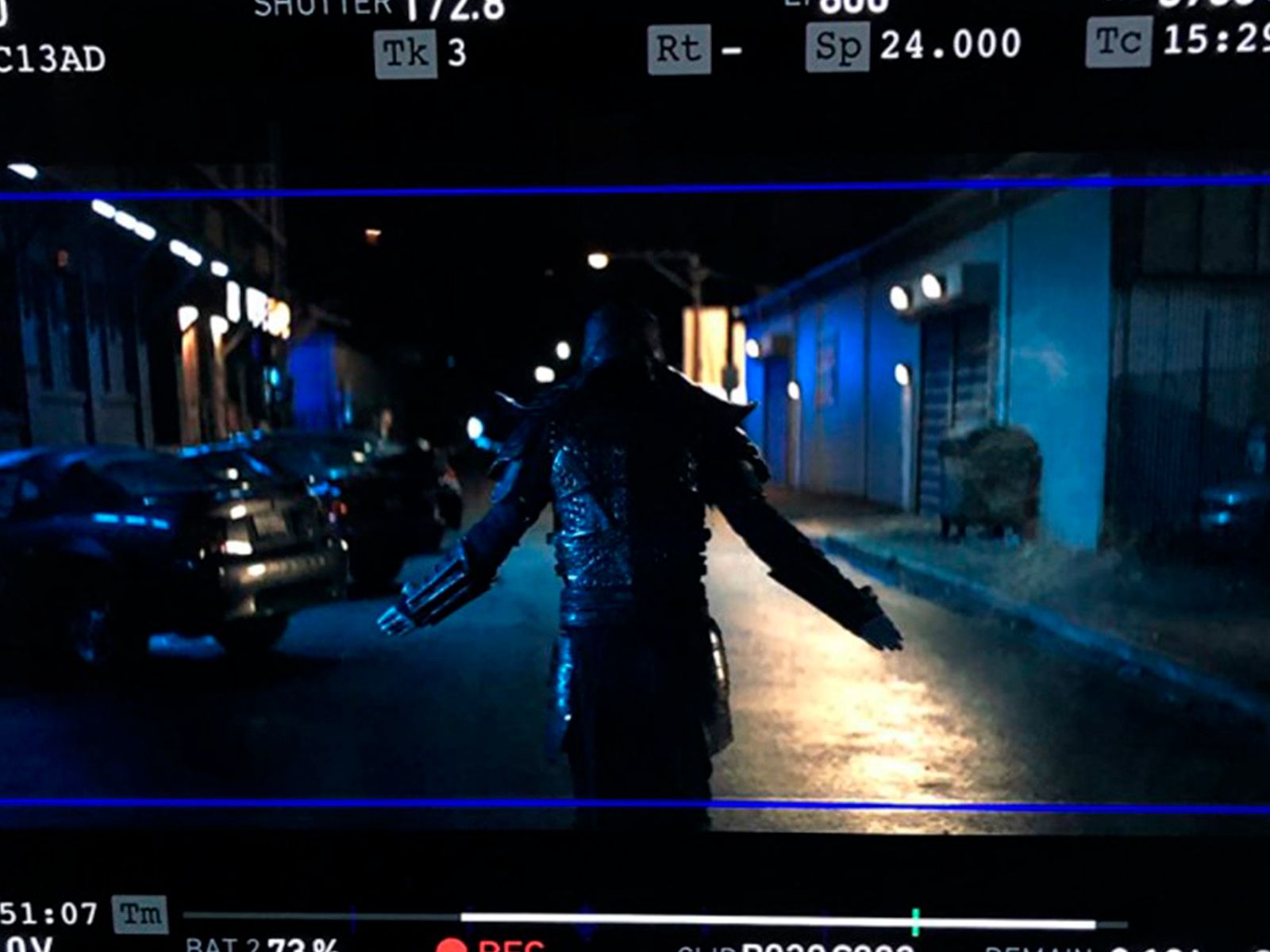 Una probadita de cómo se veía Sub-Zero (Joe Taslim) en la pantalla del set que estaba conectada a la cámara. Desde ahí ya se vía imponente.