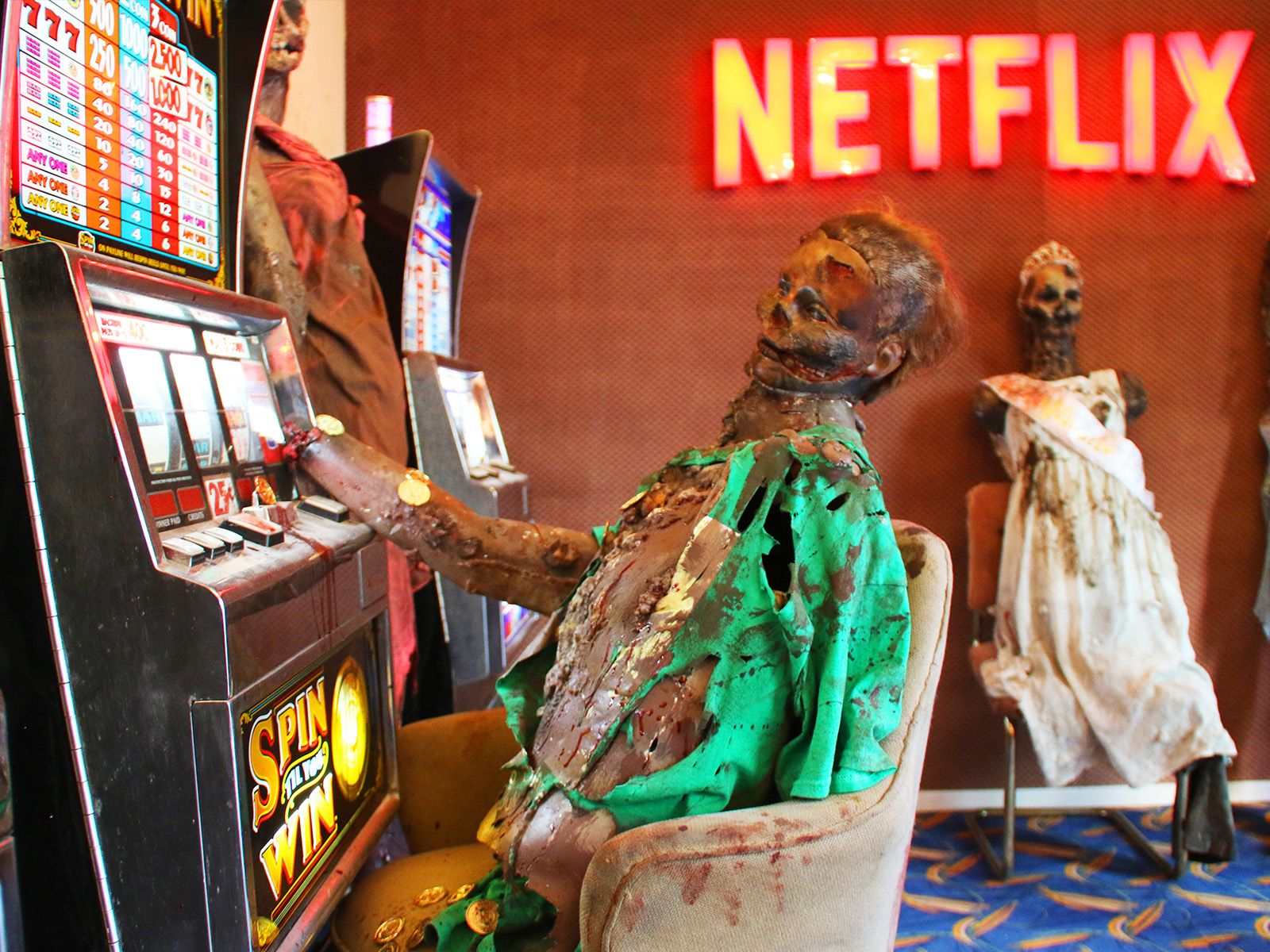 Una de nuestras partes favoritas del recorrido fue el casino zombie repleto de cadáveres, sangres, pelos y muchas máquinas de apuestas.