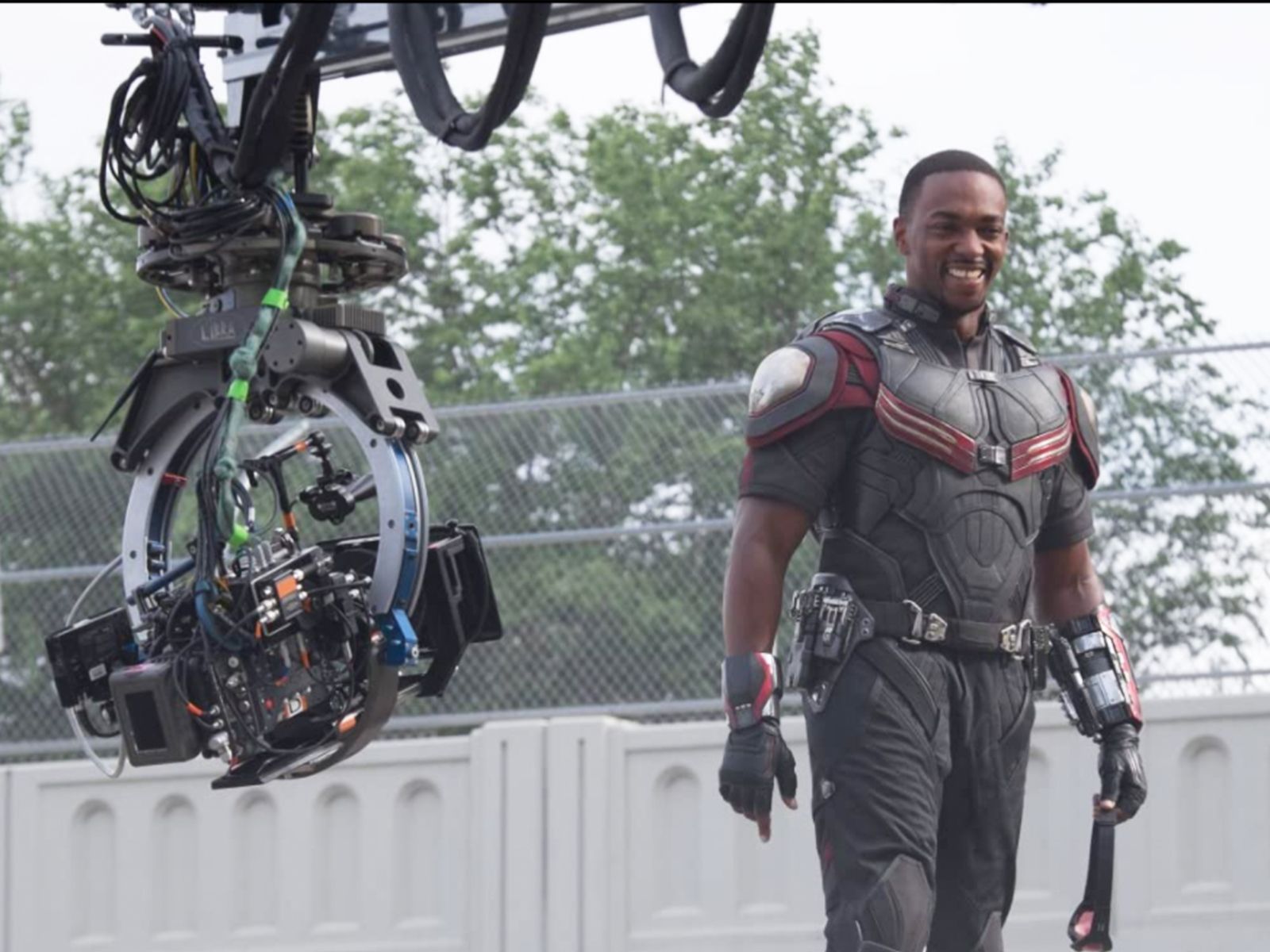 La magia del cine. Todos esos cables y arneses sustituyen las tecnológicas alas de Falcon (Anthony Mackie), en la vida real todo se hace práctico. Eso sí, en esta escena no hubo dobles de acción, crédito para el actor.