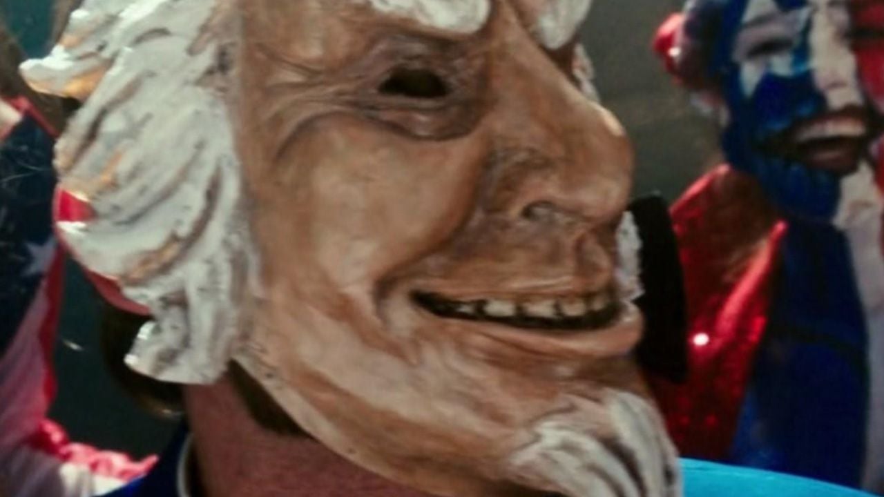 El tío Sam se hizo presente en 12 horas para sobrevivir: El año de la elección a través de esta máscara con una sonrisa, pero sabemos que quien está detrás de esto no es el más amigable que digamos.