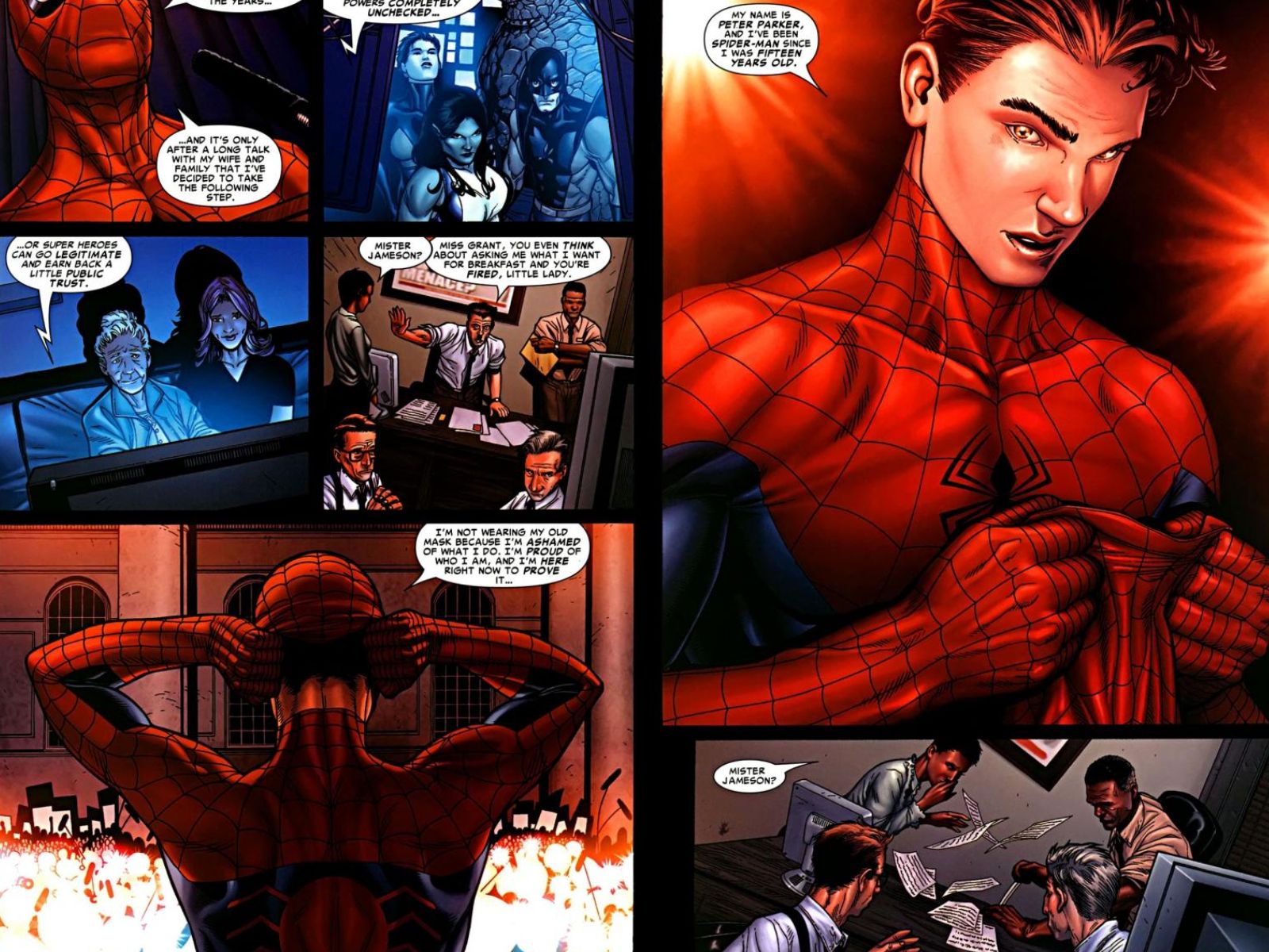Durante los acontecimientos de Civil War, Peter Parker decidió unirse al bando de Tony Stark y para dar muestra de su convicción, decidió organizar una conferencia de prensa en la que reveló su identidad ante los medios nacionales mencionando lo siguiente: "Mi nombre es Peter Parker y he sido Spider-Man desde que tenía 15 años".
