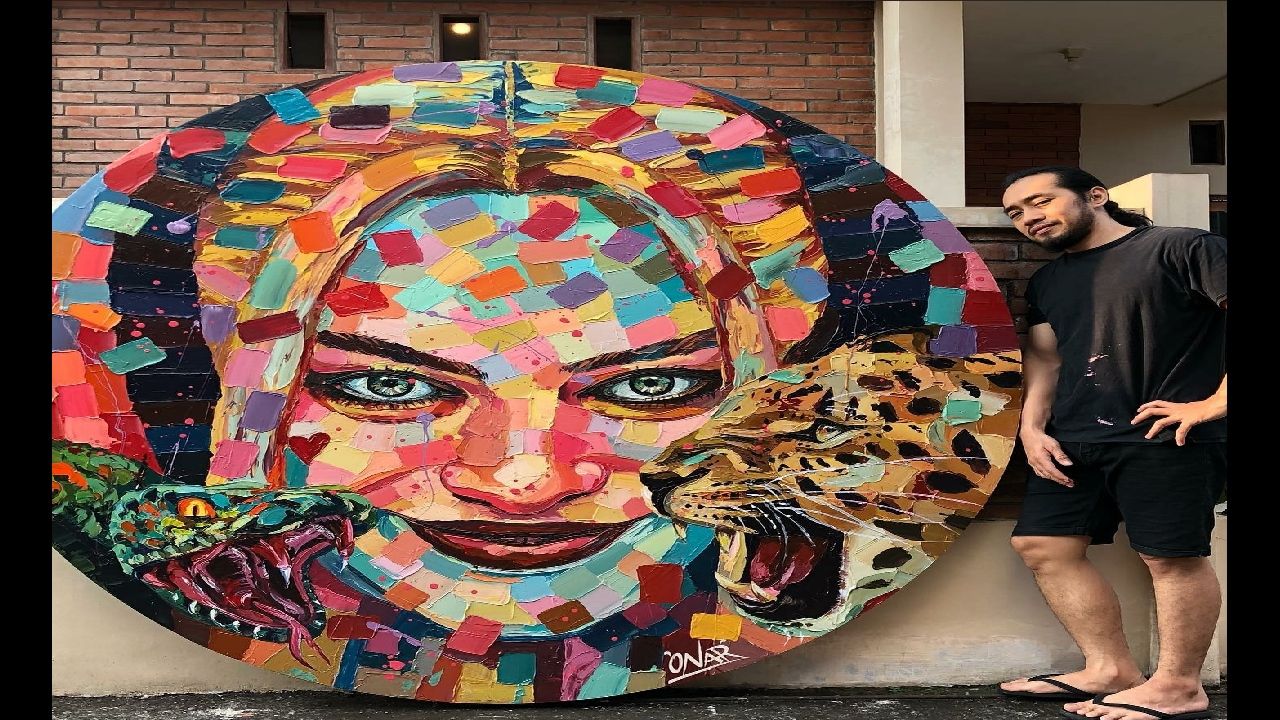 Onar, originario de Indonesia, se voló la barda con este óleo de 200 cm de rostro de Harley Quinn, que tardó cinco días en concluir, según documentó en su Instagram.