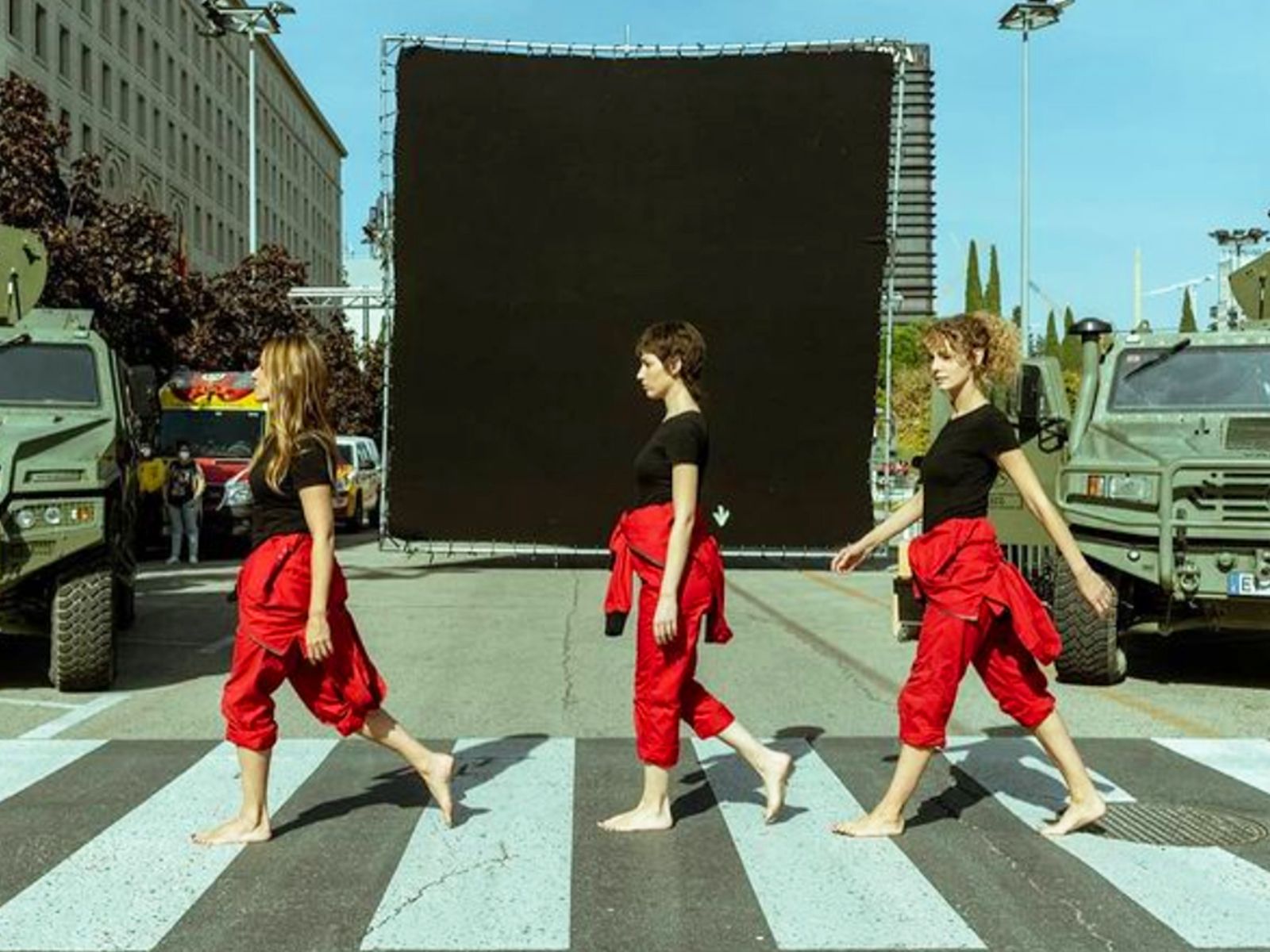 Mientras rodaban la temporada 5 de La casa de papel, Itziar Ituño, Úrsula Corberó y Esther Acebo, decidieron rendir homenaje al cuarteto de Liverpool y su aclamado álbum "Abbey Road" con esta fotografía.