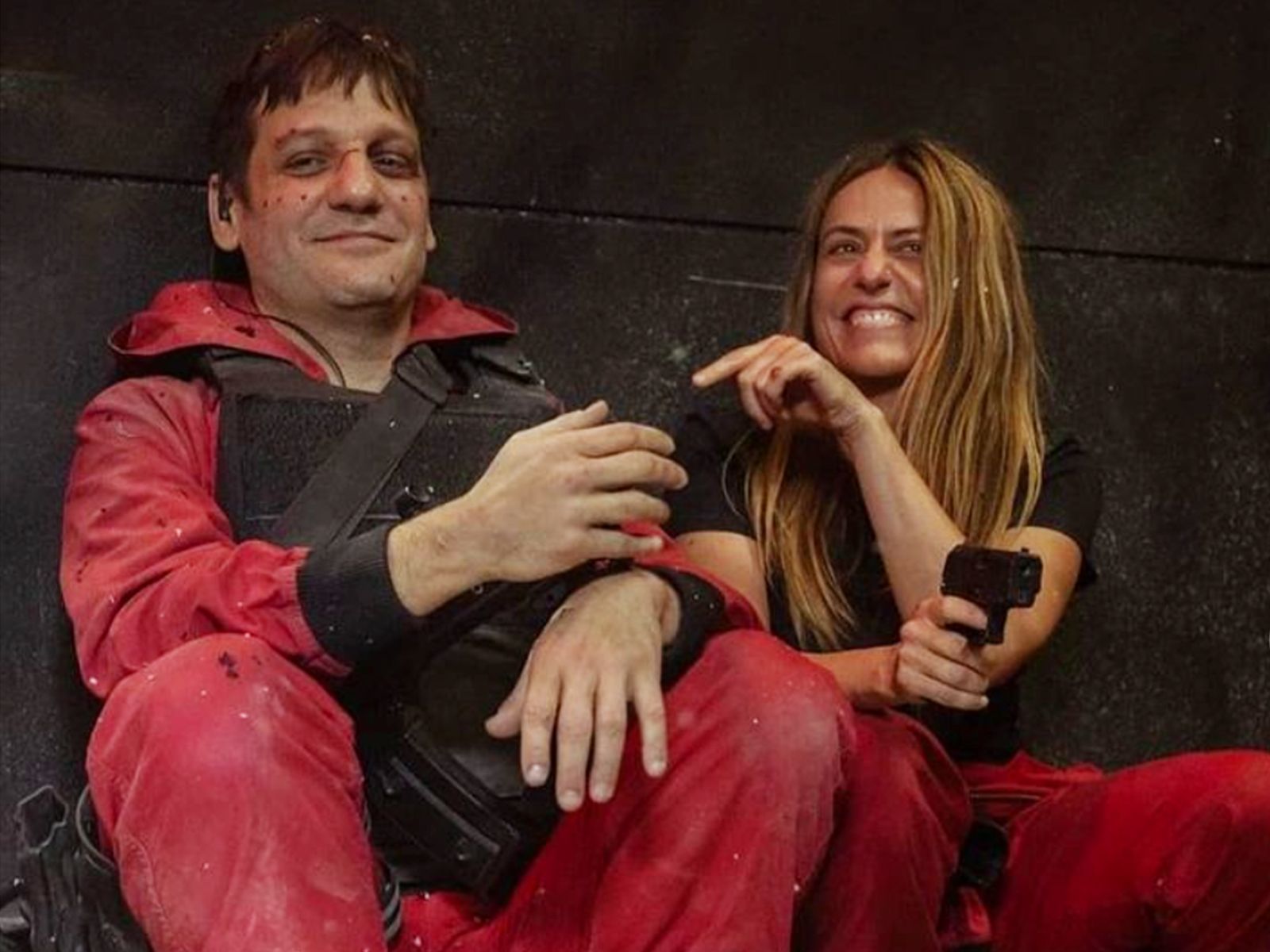 Después de una escena de acción con explosiones y miles de balas volando por doquier, Itziar Ituño y Rodrigo de la Serna pasaban el tiempo bromeando mientras estaban sentado en el suelo del set de La casa de papel.