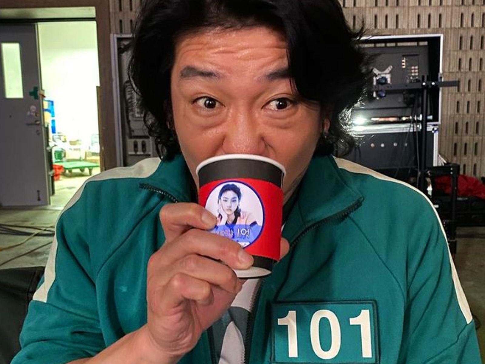 Gracias a esta imagen de El juego del calamar, podemos saber cuál era el secreto de Heo Sung-tae para interpretar al despiadado Jang Deok-su: un vaso con café justo antes antes de comenzar cada escena.
