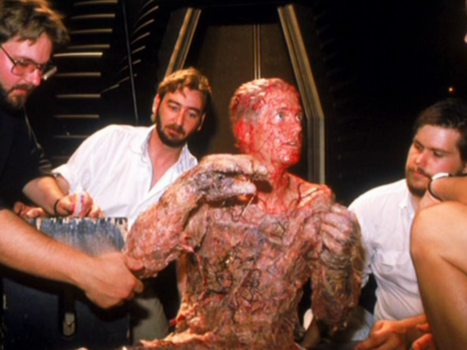 Y volvimos a los años 80, esta vez por La mosca II en la que el equipo de maquillaje recostaba a Eric Stoltz, durante 12 horas, para crear la transformación de Martin Brundle en una espeluznante criatura.