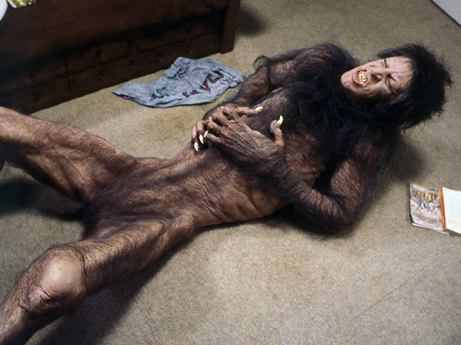 No podíamos olvidarnos de Un hombre lobo americano en Londres, cinta ochentera por la cual David Naughton requirió seis días para filmar la transformación que, en la pantalla, dura aproximadamente 2 minutos. Él estaba en la silla de maquillaje, a veces, 10 horas al día antes incluso de salir al set, mencionó en entrevista para Morbidly beautiful.