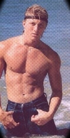 El primer gran papel de William Zabka llegó con El karate kid. No se sabe de dónde proviene esta imagen pero, por la pose y la carne que enseña, parece ser una foto de su booking como actor.
